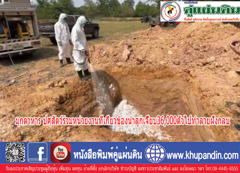 มุกดาหาร ปศุสัตว์ร่วมหน่วยงานที่เกี่ยวข้องนำลูกเจี๊ยบ36,000ตัวไปทำลายฝั่งกลบ