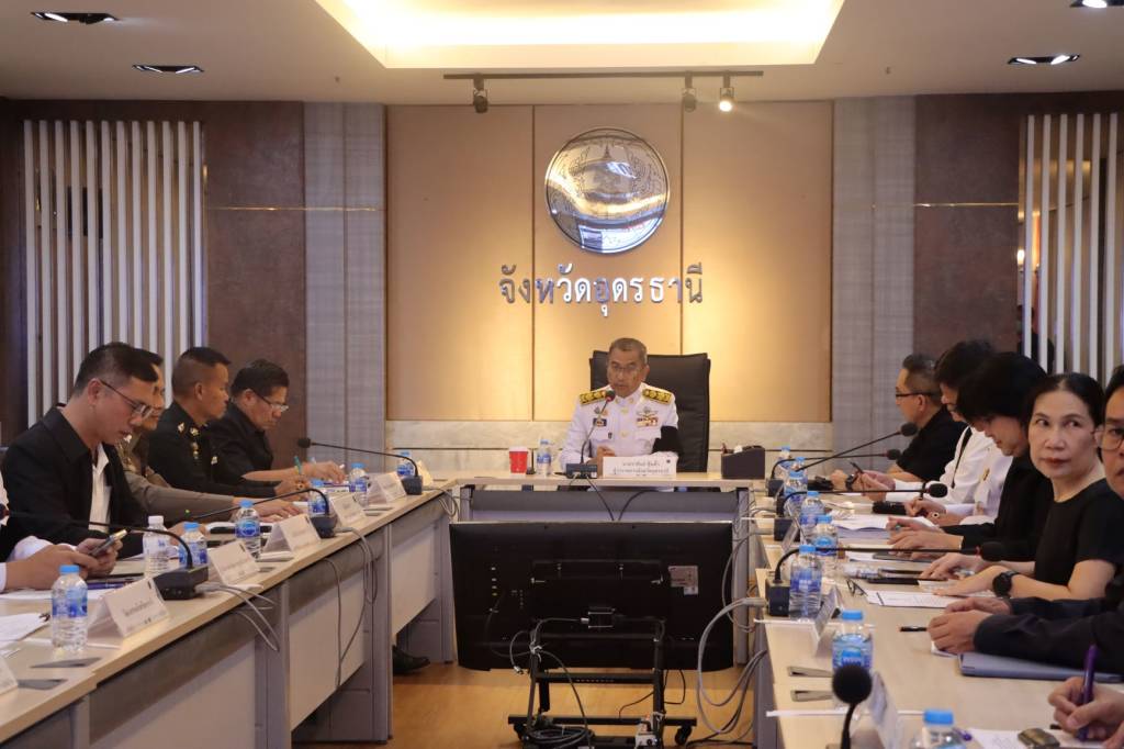 ก่อนเข้าสู่วาระการประชุมซักซ้อมแนวปฏิบัติตามประกาศสำนักนายกรัฐมนตรี เรื่อง สมเด็จพระนางเจ้าสิริกิติ์ พระบรมราชินีนาถ พระบรมราชชนนีพันปีหลวง สวรรคต นายราชันย์ ซุ้นหั้ว ผวจ.อุดรธานี กล่าวกับผู้เข้าร่วมการประชุมว่า ก่อนการประชุม ขอเชิญผู้เข้าร่วมการประชุมทุกท่านได้ยืนขึ้นสงบนิ่ง เพื่อแสดงถึงความอาลัย และน้อมรำลึกถึงพระมหากรุณาธิคุณอันหาที่สุดมิได้แก่สมเด็จพระนางเจ้าสิริกิติ์ พระบรมราชินีนาถ พระบรมราชชนนีพันปีหลวง