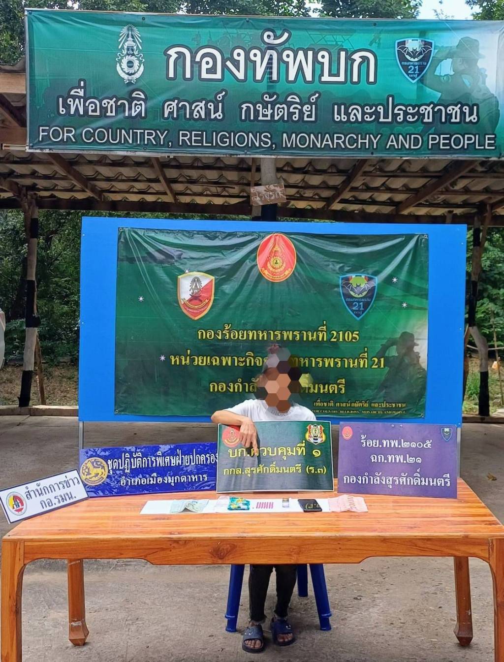 วันที่ 25 ตุลาคม 2568 กองบังคับการกองร้อยเฉพาะกิจทหารพรานที่ 2105 หน่วยเฉพาะกิจกรมทหารพรานที่ 21 บ้านบุ่งอุทัย ตำบลนาสีนวน อำเภอเมือง จังหวัดมุกดาหาร ร้อยโท วันชาติ เหมือนปืน ผู้บังคับกองร้อยเฉพาะกิจทหารพรานที่ 2105 ร่วมกับชุดปฏิบัติการข่าว สำนักการข่าว กอ.รมน. และชุดปฏิบัติการพิเศษฝ่ายปกครองอำเภอเมืองมุกดาหาร เข้าปิดล้อมตรวจค้นบ้านเลขที่ 50 บ้านท่าไคร้ หมู่ 6 ตำบลนาสีนวน อำเภอเมือง จังหวัดมุกดาหาร หลังได้รับรายงานว่ามีการลักลอบจำหน่ายยาเสพติดในพื้นที่ จากการตรวจค้นพบ น.ส.รานี โคชขึง อายุ 44 ปี เจ้าของบ้าน พร้อมของกลาง ยาเสพติดให้โทษประเภท 1 (ยาบ้า) จำนวน 71 เม็ด เงินสด 810 บาท และโทรศัพท์มือถือ 1 เครื่อง