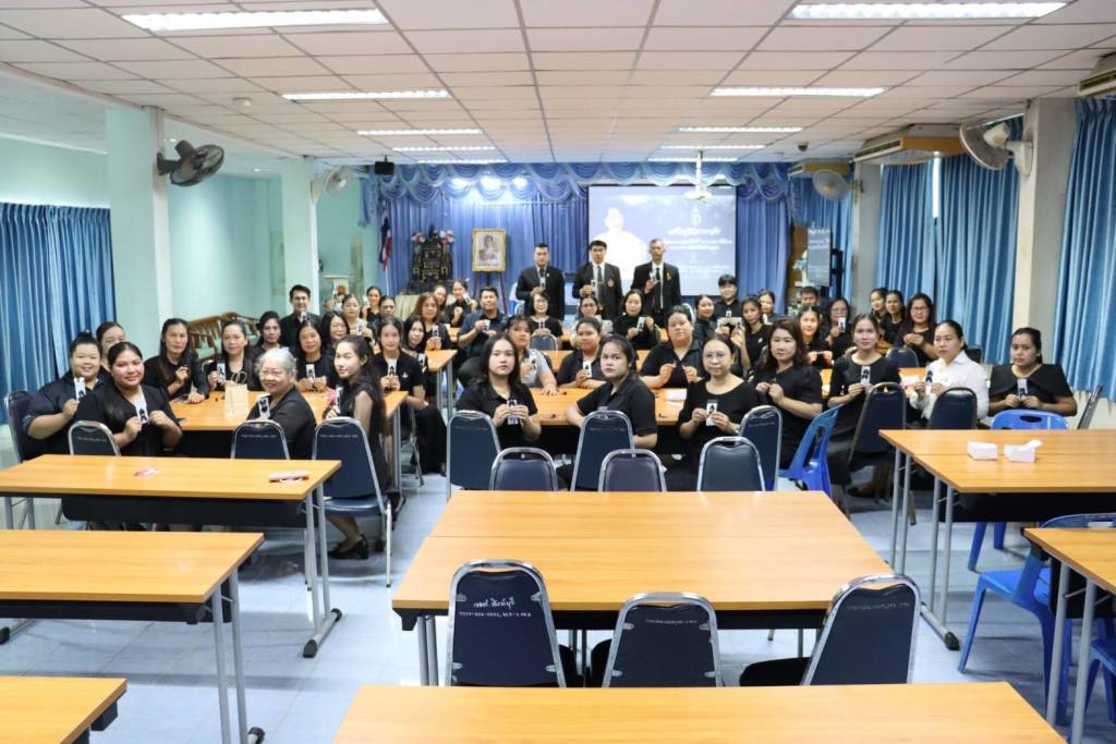 ทำริบบิ้นแจก วิทยาลัยอาชีวศึกษาสิงห์บุรีจัดทำริบบิ้น ติดชุดไว้ทุกข์ พระพันปีหลวง มอบให้ทุกส่วนราชการในสิงห์บุรี