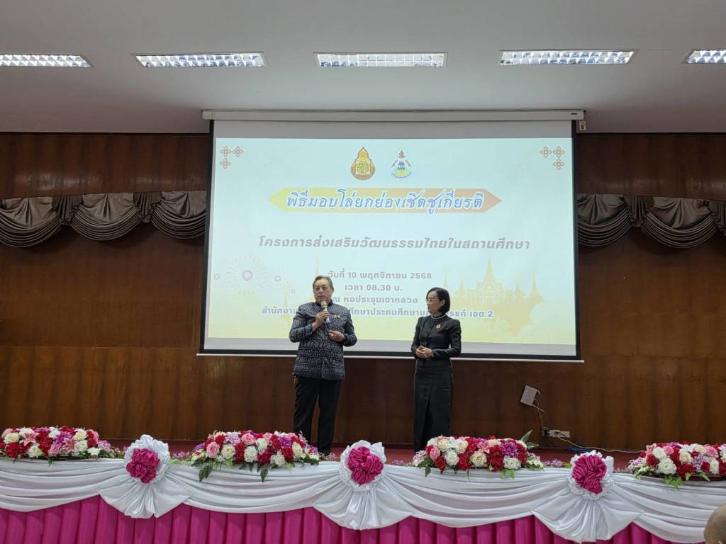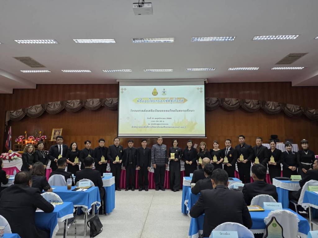 วันจันทร์ ที่ 10 พฤศจิกายน 2568 เวลา 08.30 น. นายพันศักดิ์ ศรีทอง ประธานสภาวัฒนธรรมจังหวัดนครสวรรค์ พร้อมคณะ จัดพิธีมอบโล่รางวัล ยอดเยี่ยม 6 ปีต่อเนื่อง จำนวน 8 โรงเรียน ยอดเยี่ยม 3 ปีต่อเนื่อง จำนวน 12 โรงเรียน โดยมีนางญาณินท์ จิตตุรงค์อาภรณ์ ผู้อำนวยการสำนักงานเขตพื้นที่การศึกษาประถมศึกษานครสวรรค์ เขต 2 เป็นประธานในการมอบรางวัลในครั้งนี้ ในการประชุมผู้บริหาร ณ หอประชุมเขาหลวง สำนักงานเขตพื้นที่การศึกษาประถมศึกษานครสวรรค์ เขต 2 ที่ดำเนินการส่งเสริมและสนับสนุนด้านวัฒนธรรมให้นักเรียนทุกด้านอย่างดีเยี่ยม ในปีการศึกษา 2568