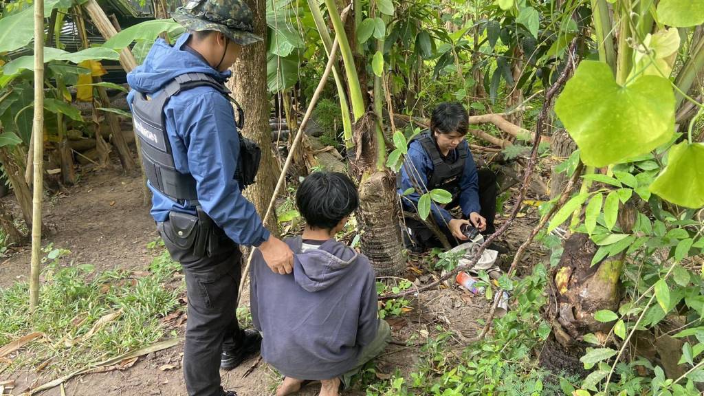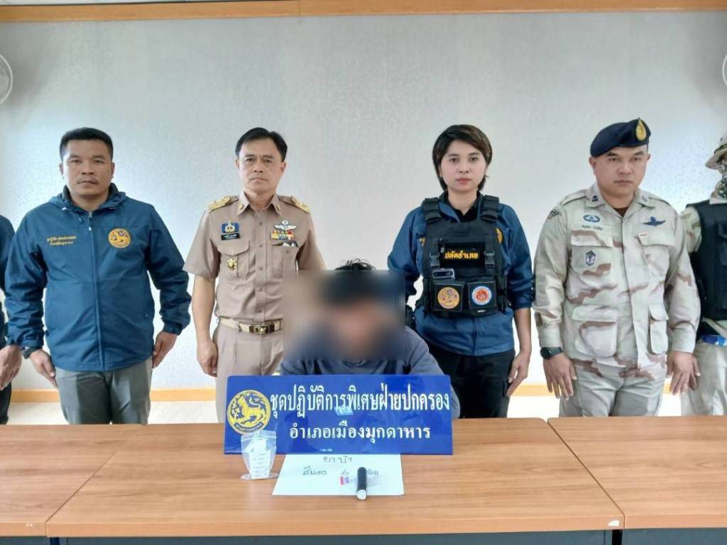 มุกดาหาร -ปค.ชุดสิงห์เมืองมุก บุกจับหนุ่มผึ่งแดดค้ายาบ้า