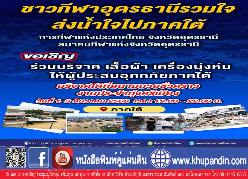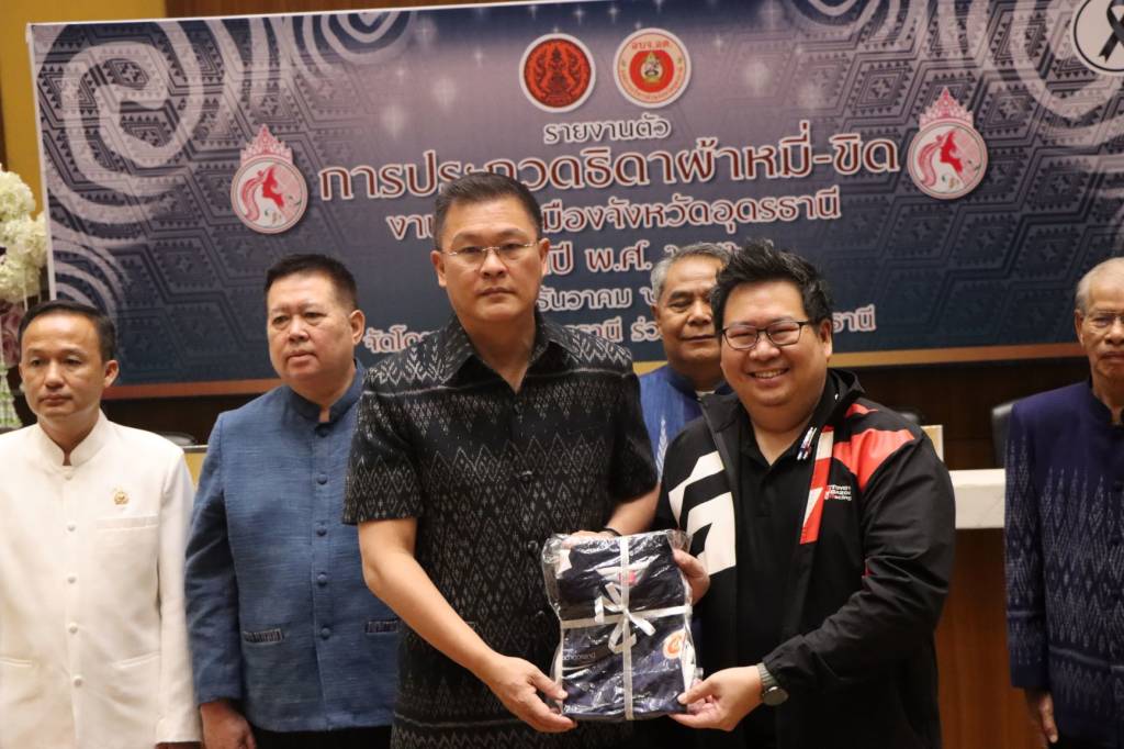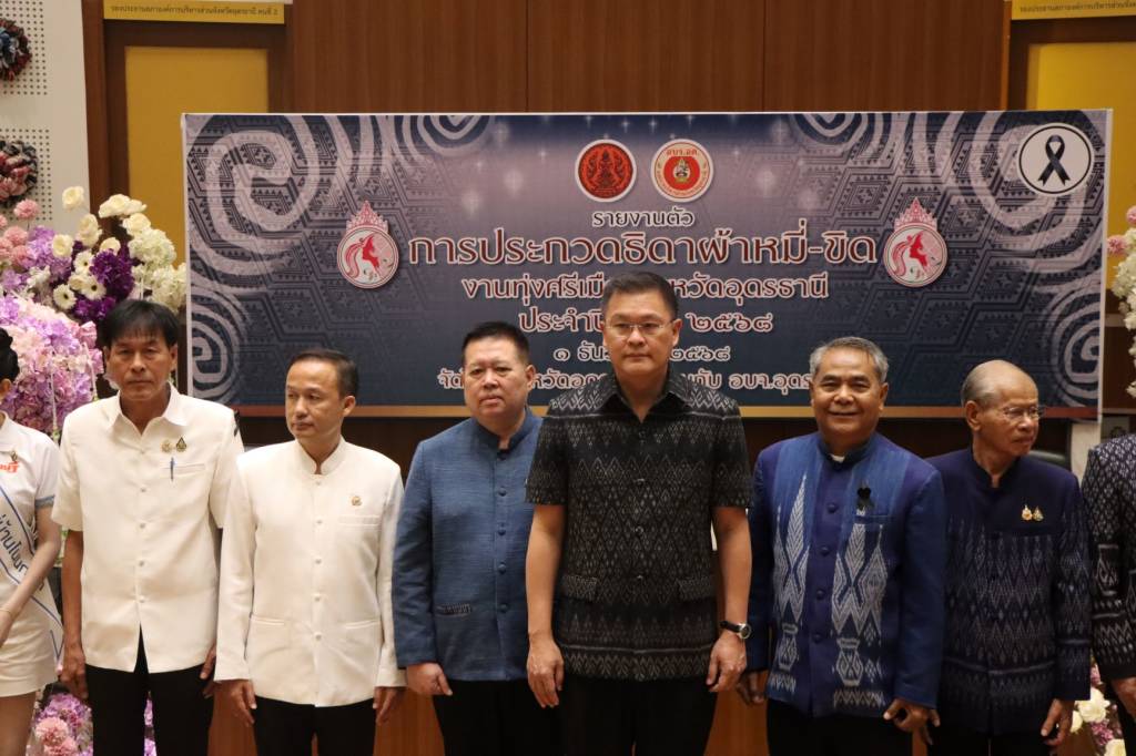 วันที่ 1 ธ.ค. 2568 เวลา 10.30 น. นายศราวุธ เพชรพนมพร นายก อบจ.อุดรธานี เป็นประธานกล่าวต้อนรับและให้โอวาทแก่ผู้เข้าร่วมประกวดธิดาผ้าหมี่-ขิด ประจำปี พ.ศ. 2568 พร้อมนำคณะผู้บริหาร ผู้เข้าร่วมกิจกรรม และสาวงามผู้เข้าประกวด ยืนสงบนิ่งถวายความอาลัยแด่สมเด็จพระนางเจ้าสิริกิติ์ พระบรมราชินีนาถ พระบรมราชชนนีพันปีหลวง เป็นเวลา 93 วินาที ณ ห้องประชุมสภา อบจ.อุดรธานี โดยมี นายสมัคร บุญปก รองนายก อบจ.อุดรธานี นายชัชวาลย์ ลือคำหาญ รองนายก อบจ.อุดรธานี ที่ปรึกษานายก อบจ.อุดรธานี เลขานุการนายก อบจ.อุดรธานี ปลัด อบจ.อุดรธานี รองปลัด อบจ.อุดรธานี หน.สำนักปลัด อบจ.อุดรธานี ผอ.กอง หัวหน้าส่วนราชการ ในสังกัด อบจ.อุดรธานี และผู้มีส่วนเกี่ยวข้องเข้าร่วมในกิจกรรม นอกจากนี้ยังได้รับเกียรติจาก กรรมการ บจก.โตโยต้าอุดรธานี หจก. ณัฐมอเตอร์เซลล์ กลุ่มทอผ้าโบราณบ้านโนนกอก และ DS Clinic คลิกนิกคุณหมอดาวใจ – หมอสมพงษ์ ร่วมเป็นเกียรติในพิธี และเป็นตัวแทนผู้สนับสนุนมอบสิ่งของสนับสนุนการประกวด ฯ