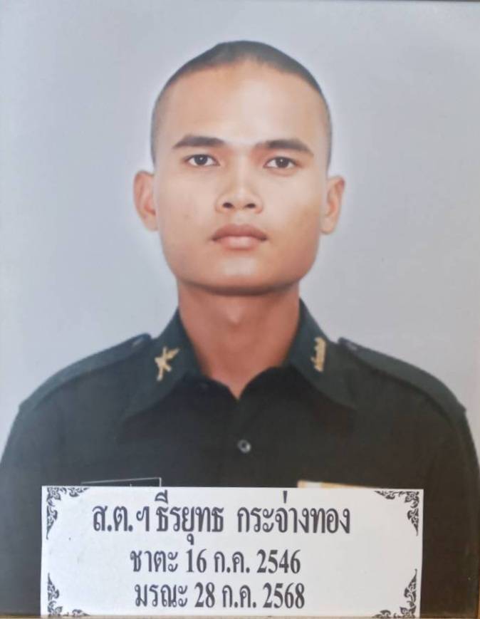 การปฏิบัติหน้าที่ของทหารในพื้นที่เสี่ยงภัย โดยเฉพาะในสถานการณ์ความไม่สงบตามชายแดนไทย - กัมพูชา เมื่อเกิดเหตุปะทะย่อมมีโอกาสเกิดความสูญเสียต่อกำลังพลอย่างหลีกเลี่ยงไม่ได้ เช่นเดียวกับ พลทหาร ธีรยุทธ กระจ่างทอง สังกัด กองพันทหารปืนใหญ่ต่อสู้อากาศยานที่ 2 กรมทหารปืนใหญ่ต่อสู้อากาศยานที่ 2 ที่ได้เสียชีวิตจากการปฏิบัติหน้าที่เพื่อปกป้องอธิปไตยของชาติ บริเวณแนวรบ ช่องตาเฒ่า อำเภอกันทรลักษ์ จังหวัดศรีสะเกษ