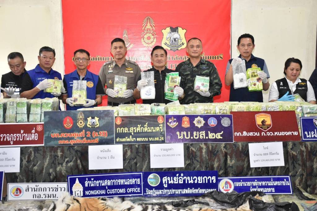 “นบ.ยส.24” จับกุมขบวนการค้ายาไอช์ น้ำหนัก 889 กก., คตามีน 200 กก. มูลค่ารวมกว่า 150,460,000 บาท  ในพื้นที่ อ.เมือง จ.หนองคาย