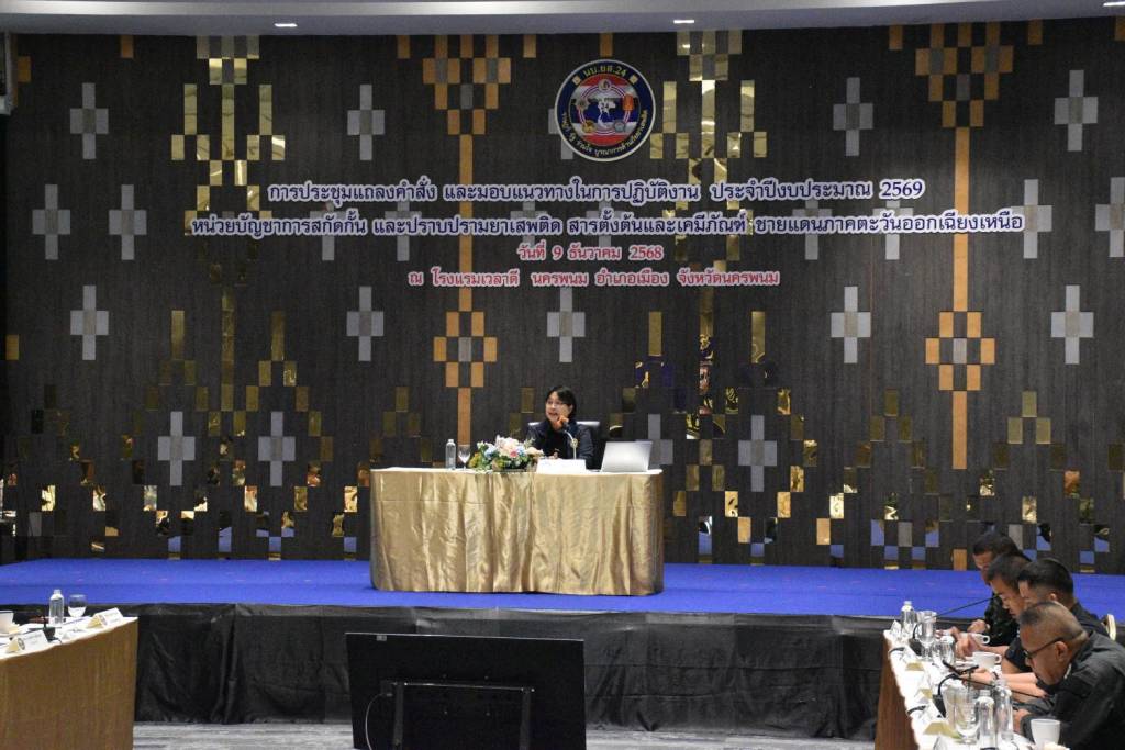 วันที่ 9 ธันวาคม 2568 เวลา 1330 นาฬกา ที่โรงแรมเวลาดี นครพนม อำเภอเมืองนครพนม จังหวัดนครพนม พลโท วีระยุทธ รักศิลป์ แม่ทัพภาคที่ 2/ ผู้บัญชาการหน่วยบัญชาการสกัดกั้น และปราบปรามยาเสพติด สารตั้งต้น และเคมีภัณฑ์ชายแดน ภาคตะวันออกเฉียงเหนือ ( มทภ.2/ผบ.นบ.ยส.24) มอบหมายให้พลตรี สุคนธรัตน์ ชาวพงษ์ รองแม่ทัพภาคที่ 2/ รองผู้บัญชาการหน่วยบัญชาการสกัดกั้น และปราบปรามยาเสพติด สารตั้งต้น และเคมีภัณฑ์ชายแดนภาคตะวันออกเฉียงเหนือ (รอง มทภ.2/รอง ผบ.นบ.ยส.24) และนายอภิกิจ ฉ. โรจน์ประเสริฐ รองเลขาธิการคณะกรรมการป้องกันและปราบปรามยาเสพติด (รอง เลขาธิการ ป.ป.ส.) พร้อมหน่วยงานที่เกี่ยวข้องเข้าร่วมประชุมแถลงคำสั่งหน่วยบัญชาการสกัดกั้น และปราบปรามยาเสพติด สารตั้งต้น และเคมีภัณฑ์ชายแดนภาคตะวันออกเฉียงเหนือ (นบ.ยส.24) และมอบ แนวทางการปฏิบัติงาน ประจำปีงบประมาณ 2569 ขึ้น เพื่อให้ทุกหน่วย ทุกส่วนราชการได้รับทราบ บทบาทอำนาจ หน้าที่ และแนวทางการปฏิบัติภารกิจ บูรณาการร่วมกันทุกภาคส่วน พร้อมทั้งได้มอบนโยบาย และข้อเน้นย้ำในการปฏิบัติงานจาก รองเลขาธิการ คณะกรรมการป้องกัน และปราบปรามยาเสพติด รวมทั้งแม่ทัพภาคที่ 2 ซึ่งปฏิบัติหน้าที่ ผู้บัญชาการหน่วยบัญชาการสกัดกั้น และปราบปรามยาเสพติด สารตั้งต้น และเคมีภัณฑ์ ชายแดน ภาคตะวันออกเฉียงเหนือ ให้หัวหน้าส่วนราชการได้รับทราบ และจะนำไปสู่การปฏิบัติ เพื่อให้ การแก้ไขปัญหายาเสพติดเกิดประสิทธิภาพ ตามความมุ่งหมายของคณะกรรมการป้องกัน และปราบปรามยาเสพติด และรัฐบาล เพื่อบูรณาการแก้ไขปัญหายาเสพติดในพื้นที่ 7 จังหวัด 25 อำเภอชายแดนภาคตะวันออกเฉียงเหนือ อันจะส่งผลให้การสกัดกั้นป้องกันปราบปราม และแก้ไขปัญหายาเสพติดเกิดประสิทธิภาพสูงสุดต่อไป….