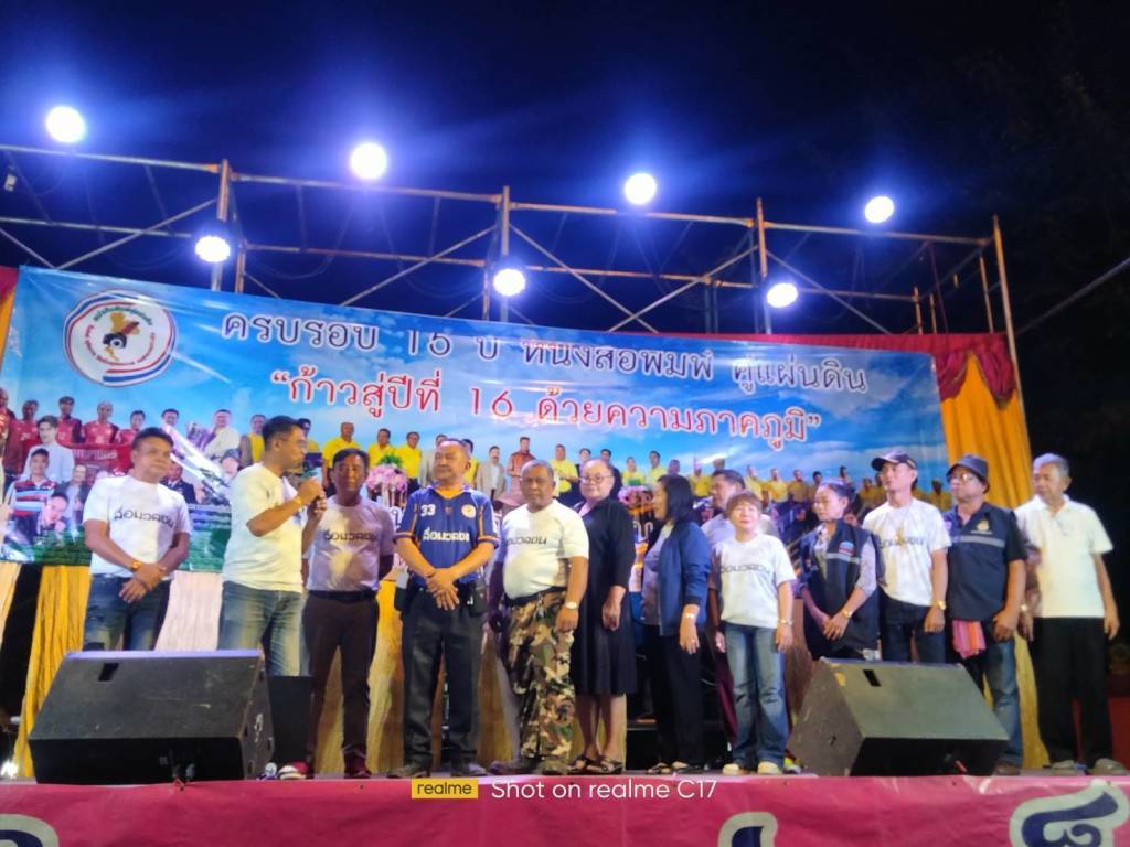 เวลา 18.00 น. งานเลี้ยงสังสรรค์ฉลองครบรอบ 15 ปี หนังสือพิมพ์คู่แผ่นดิน นายลำดวน ปากเข็ด และศรีหลอด เชิญยิ้ม พิธีกร เชิญแขกผู้มีเกียรติทุกท่าน ร่วมยืนสงบนิ่งถวายความอาลัยแด่ สมเด็จพระนางเจ้าสิริกิติ์ พระบรมราชินีนาถ พระบรมราชชนนีพันปีหลวง โดยยืนสงบนิ่ง 93 วินาที และร่วมร้องเพลงสรรเสริญพระบารมี หลังจากนั้น นายกิตติศักดิ์ ศิริคลังเจริญรุ่ง (ต้น คู่แผ่นดิน) บรรณาธิการหนังสือพิมพ์ คู่แผ่นดิน กล่าวรายงานวัตถุประสงค์ ดร.บุญมา พันดวง นายกสมาคมโฆษกศิลปินไทยอีสาน ประธานในงานกล่าวเปิดงาน และมอบทุนการศึกษาให้กับเด็กนักเรียนระดับประถม และมัธยม จำนวน 20 ทุน โดยมีผู้ใหญ่หลายท่านร่วมกล่าวอวยพรและแสดงความยินดีกับหนังสือพิมพ์คู่แผ่นดิน และสื่อมวลชนสังกัดหนังสือพิมพ์คู่แผ่นดิน ในโอกาสครบรอบ 15 ปี และร่วมสนุกสนานกับดาราศิลปินที่มามอบความสุขหน้าเวที อาทิ เกษม คมสันต์ ,อ๊อฟ ชนะพล สัตยา ,ศรีหลอด เชิญยิ้ม ,ชัชชัย ชัชวาลย์ ,เหลือง บริสุทธิ์ ,ถาวร สายทองคำ ,พรเทพ เพชรซำสูง ,อ.ชาติ มหาชน พร้อมคณะหมอลำลำดวน ปากเข็ด พร้อมนักร้องรับเชิญ พล.อ.ต.อภัยวงศ์ คำเพชร กองบัญชาการกองทัพไทย ,พ.ต.อ.ภานุวัฒน์ วิเศษเลิศ สร้างความสนุกสนานให้กับแขกผู้มีเกียรติทุกท่านที่มาร่วมงาน และได้มีการจัดเซอร์ไพรส์วันเกิด นายรัฐธรรมมนูญ บุญเกิด (บ่าวข้าวก่ำ) และ นายไสว งามดี (บ่าวต๋อย) สร้างความประทับใจแด่เจ้าของวันเกิดและแขกที่มาร่วมงาน ในครั้งนี้มีสื่อมวลชนในสังกัดและเครือข่ายสื่อมวลชนพวกพ้องน้องพี่ทั่วภูมิภาคเดินทางมาร่วมแสดงความยินดีในงานครบรอบ 15 ปี หนังสือพิมพ์คู่แผ่นดิน ณ กองบรรณาธิการหนังสือพิมพ์ คู่แผ่นดิน เลขที่ 169 หมู่ 1 ตำบลห้วยสามพาด อำเภอประจักษ์ศิลปาคม จังหวัดอุดรธานี
