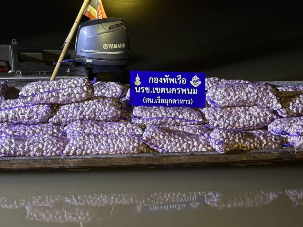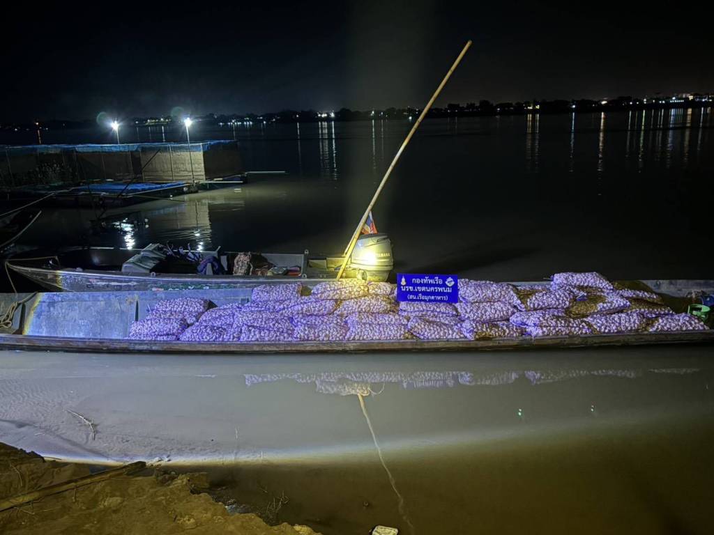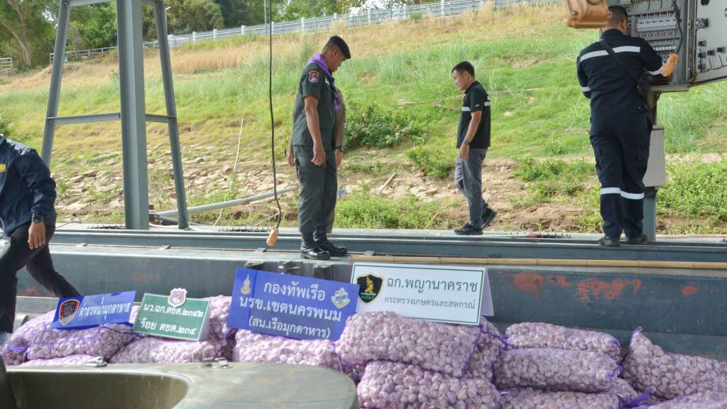 มุกดาหาร -นรข.สกัดจับกระเทียมเถื่อน ลักลอบขนข้ามโขงไม่ยอมเสียภาษี