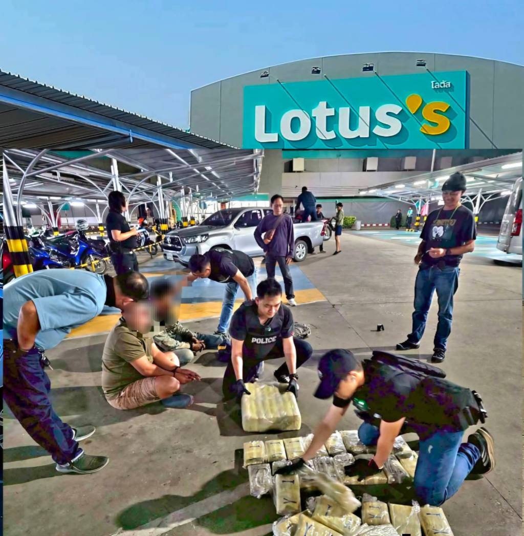 มุกดาหาร -บช.ปส.รวบ 2 นักบินมุกดาหาร ยึดของกลางยาบ้ากว่า 2.8 แสนเม็ด กลางลานจอดรถโลตัส