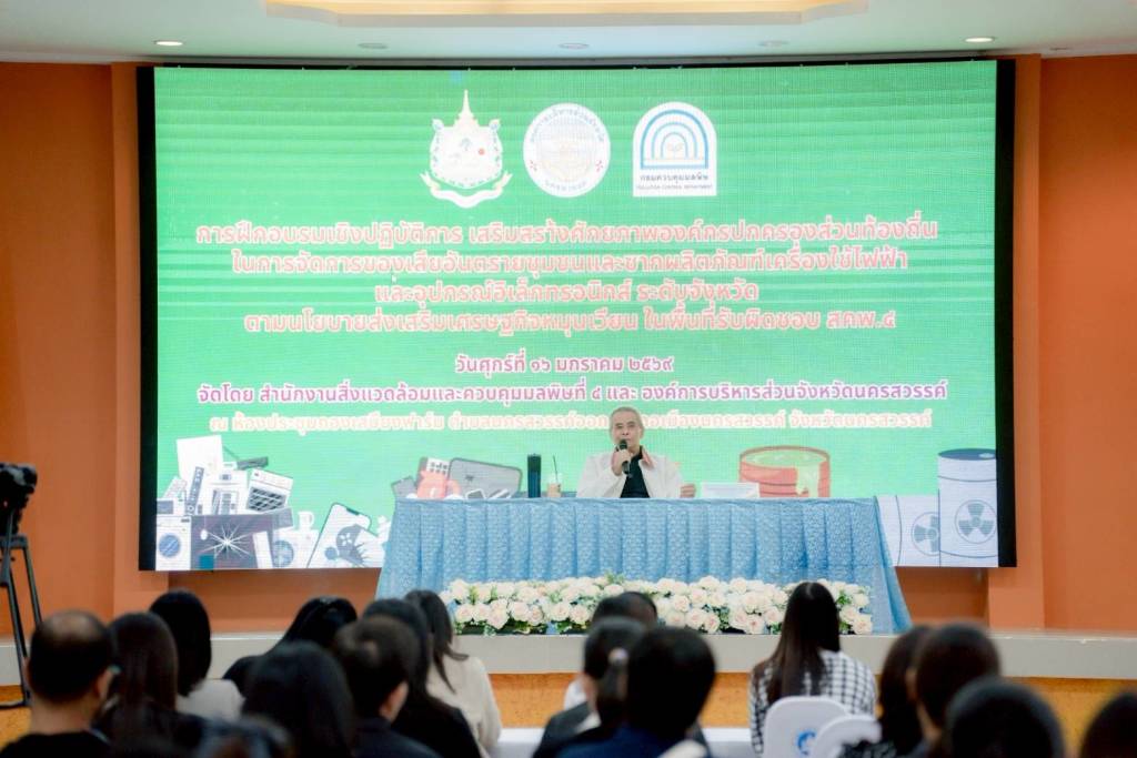 วันที่ 16 มกราคม 2569 เวลา 09.30 น. พลตำรวจเอกสมศักดิ์ จันทะพิงค์ นายก อบจ.นครสวรรค์ เป็นประธานในพิธีเปิดการฝึกอบรมเชิงปฏิบัติการ เสริมสร้างศักยภาพองค์กรปกครองส่วนท้องถิ่น ในการจัดการของเสียอันตรายชุมชนและซากผลิตภัณฑ์เครื่องใช้ไฟฟ้า และอุปกรณ์อิเล็กทรอนิกส์ ระดับจังหวัด ตามนโยบายส่งเสริมเศรษฐกิจหมุนเวียน ในพื้นที่รับผิดชอบ สคพ.4 พร้อมมอบนโยบายการจัดการของเสียอันตรายชุมชนในจังหวัดนครสวรรค์ ประจำปีงบประมาณ พ.ศ. 2569 โดยมี นายปัญญา วรเพชรายุทธ ผู้อำนวยการสำนักงานสิ่งแวดล้อมและควบคุมมลพิษที่ 4 เป็นผู้กล่าวรายงานวัตถุประสงค์การจัดโครงการฯ ณ ห้องประชุมกองเสบียงฟาร์ม ต.นครสวรรค์ออก อ.เมืองฯ จ.นครสวรรค์