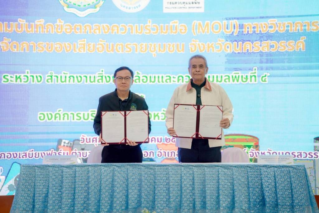 โดยมี นางสุดฤทัย เลาสุขศรี รองนายก อบจ.นครสวรรค์ พร้อมด้วย ร้อยตำรวจโท พิทักษ์ พันธ์งิ้ว, นายโสพล โอทาตะ เลขานุการนายก อบจ.นครสวรรค์ นางณภัทร สื่อสุนทรานนท์ ปลัด อบจ.นครสวรรค์ สิบเอก พิทยา นาคกุญชร รองปลัด อบจ.นครสวรรค์ และนายสันติ จันทร์เผิบ ผู้ทรงคุณวุฒิ อบจ.นครสวรรค์ เข้าร่วมในพิธีเปิด การจัดอบรมในครั้งนี้มีวัตถุประสงค์เพื่อเสริมสร้างความรู้ ความเข้าใจ และยกระดับศักยภาพให้แก่เจ้าหน้าที่องค์กรปกครองส่วนท้องถิ่นและหน่วยงานที่เกี่ยวข้อง ในการบริหารจัดการของเสียอันตรายชุมชน ซากผลิตภัณฑ์เครื่องใช้ไฟฟ้า และอุปกรณ์อิเล็กทรอนิกส์ ตั้งแต่กระบวนการคัดแยก เก็บรวบรวม ขนส่ง ตลอดจนการบำบัดและกำจัดอย่างถูกต้องตามหลักวิชาการและกฎหมายที่เกี่ยวข้อง มีการบรรยายให้ความรู้เกี่ยวกับสถานการณ์การจัดการของเสียอันตรายชุมชนในจังหวัดนครสวรรค์ โดยวิทยากรจากกองสาธารณสุข อบจ.นครสวรรค์ รวมถึงการถ่ายทอดแนวทางปฏิบัติที่ดี มาตรฐานสถานที่และภาชนะกักเก็บของเสียอันตราย ตลอดจนแนวทางการดำเนินงานตั้งแต่ต้นทาง กลางทาง และปลายทาง โดยวิทยากรจากกรมควบคุมมลพิษ และบริษัทเอกชนผู้รับบำบัดและกำจัดของเสียอันตรายจากชุมชน นอกจากนี้ ยังมีการลงนามบันทึกข้อตกลงความร่วมมือ (MOU) ทางวิชาการ ระหว่างองค์การบริหารส่วนจังหวัดนครสวรรค์ และสำนักงานสิ่งแวดล้อมและควบคุมมลพิษที่ 4 เพื่อบูรณาการความร่วมมือในการพัฒนาระบบการจัดการของเสียอันตรายชุมชนให้มีประสิทธิภาพ ลดผลกระทบต่อสิ่งแวดล้อม และยกระดับคุณภาพชีวิตของประชาชนในพื้นที่อย่างยั่งยืน นายก อบจ.นครสวรรค์ เน้นย้ำว่า "การจัดการขยะอันตรายต้องทำอย่างถูกต้องและต่อเนื่อง ปัจจุบันการเก็บขยะอันตรายปีละ 1 ครั้งยังไม่เพียงพอ ควรปรับเป็นการเก็บทุกเดือน เพื่อป้องกันไม่ให้ขยะอันตรายปะปนในบ่อขยะ ซึ่งอาจส่งผลกระทบต่อแหล่งน้ำบาดาลและสุขภาพของประชาชน โดยขยะอันตรายเป็นเรื่องสำคัญที่ทุกภาคส่วนต้องตระหนักและร่วมกันจัดการอย่างจริงจัง"