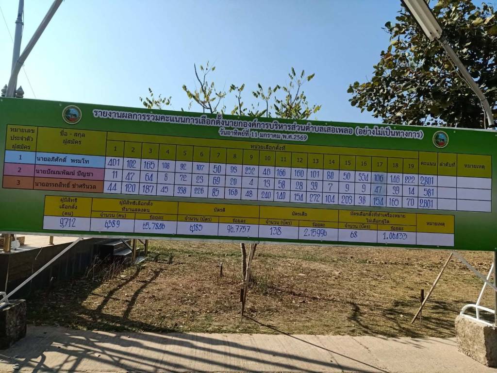 เลือกตั้ง นายกองค์การบริหารส่วนตำบลเสอเพลอ อำเภอกุมภวาปี จังหวัดอุดรธานี คะแนนเท่ากันเพราะบังเอิญ หรือโกงการนับคะแนน เลือกตั้งนายก อบต.เสอเพลอ เมื่อวันที่ 11 มกราคม 2569 มีผู้สมัครรับเลือกตั้งนายก อบต.เสอเพลอ จำนวน 3 ราย ปรากฏว่าผู้สมัคร 2 รายได้คะแนนเท่ากัน คือ 2,801 คะแนน . ผลการเลือกตั้งมีผู้สมัคร 3 คน ได้แก่ . นายอภิศักดิ์ พรมโท ผู้สมัครหมายเลข 1 (อดีตนายกฯ) ได้ 2,801 คะแนน และ นายอรรถสิทธิ์ ขำศรีนวล ผู้สมัครหมายเลข 3 ได้ 2,801 คะแนน และ นายปัณณพัฒน์ ปัญชา ผู้สมัครหมายเลข 2 ได้ 581 คะแนน มีประชาชนผู้มาใช้สิทธิจำนวน 6,389 คน จากผู้มีสิทธิ 9,712 คน คิดเป็นร้อยละ 65.78