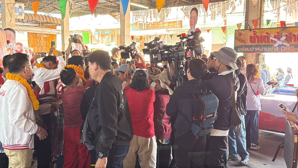 หนองบัวลำภู เพื่อไทยโหมหนัก ดร.เชน ลุยตลาดศรีบุญเรือง เหยียบถิ่น ไชยา พรหมา ช่วยผู้สมัครชิงเก้าอี้ ส.ส.เขต 2 ไม่หวั่นไม่ใช่พื้นที่ของใคร แม่ค้ากรี๊ด เห็นคนหล่อ