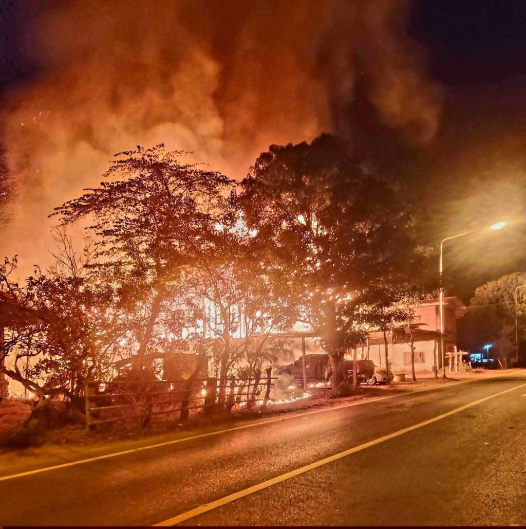 มุกดาหาร -ระทึกกลางดึก! ไฟไหม้ดงหลวงบ้านไม้ 2 ชั้น วอดเสียหายเกือบทั้งหลัง