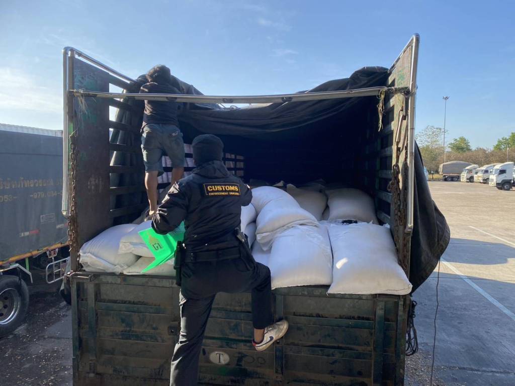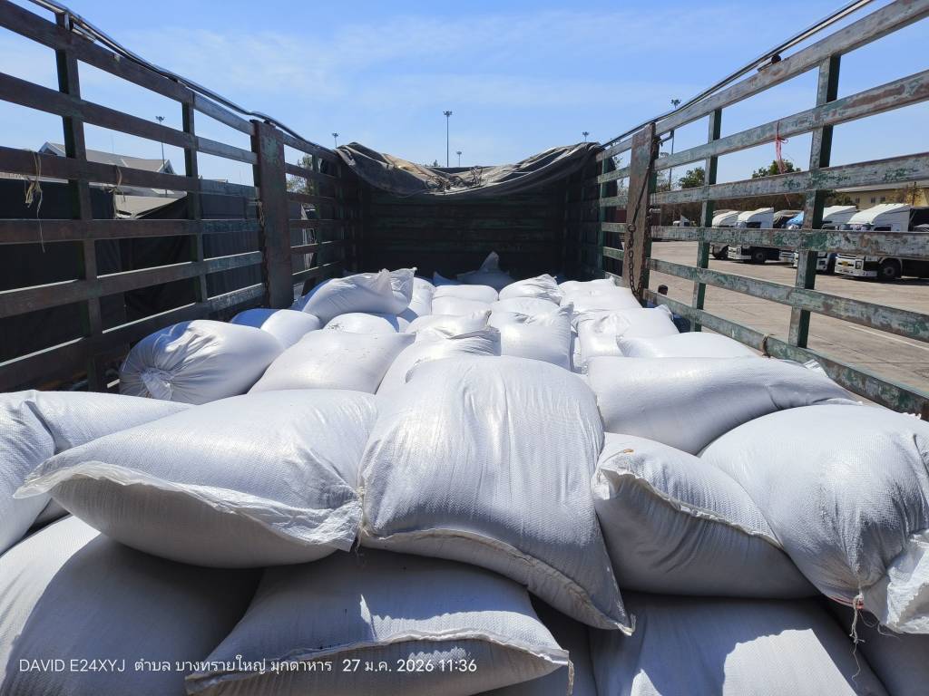มุกดาหาร -รวบคาสี่แยก! ศุลกากรสนธิกำลังสกัดจับ "ข้าวเหนียวดำเถื่อน" กว่า 17 ตัน คาสี่แยกนิคมคำสร้อย มูลค่าทะลุ 1 ล้านบาท
