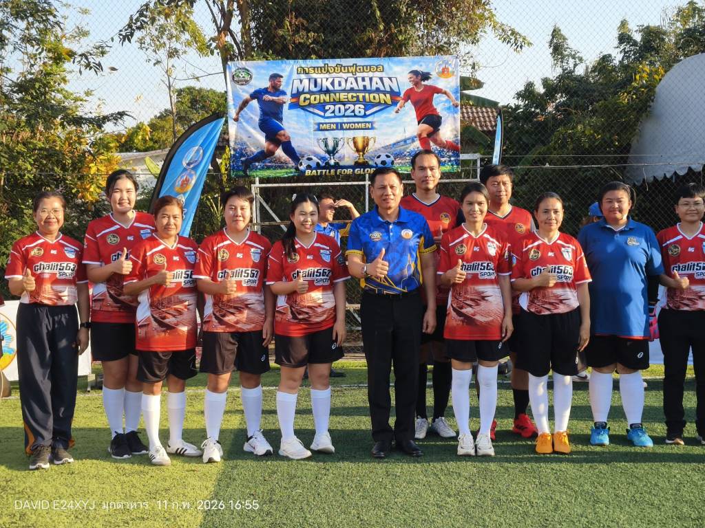 วันที่ 11 กุมภาพันธ์ 2569 ณ สนามฟุตบอลหญ้าเทียม Smile Soccer นายวรญาณ บุญณราช ผู้ว่าราชการจังหวัดมุกดาหาร เป็นประธานในพิธีเปิดการแข่งขันฟุตบอลรายการ “Mukdahan Connection Cup 2026” โดยมีนายชลิต ทิพย์คำ รองผู้ว่าราชการจังหวัด ในนามคณะกรรมการจัดการแข่งขันเป็นผู้กล่าวรายงาน ท่ามกลางบรรยากาศคึกคักของเหล่านักกีฬาและบุคลากรจากหลากหลายหน่วยงาน การแข่งขันในครั้งนี้มีวัตถุประสงค์หลักเพื่อส่งเสริมให้บุคลากรทั้งภาครัฐและเอกชนได้ออกกำลังกายเพื่อสุขภาพที่แข็งแรง แต่ที่สำคัญยิ่งกว่าคือการใช้กีฬาเป็นสื่อกลางในการ “สร้างเครือข่ายความร่วมมือ” (Connection) เพื่อให้การประสานราชการและการทำงานร่วมกันในอนาคตเป็นไปอย่างราบรื่นและมีประสิทธิภาพสูงสุด