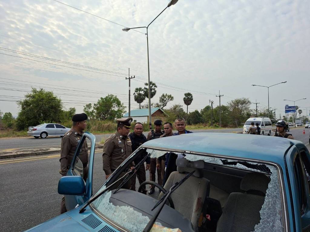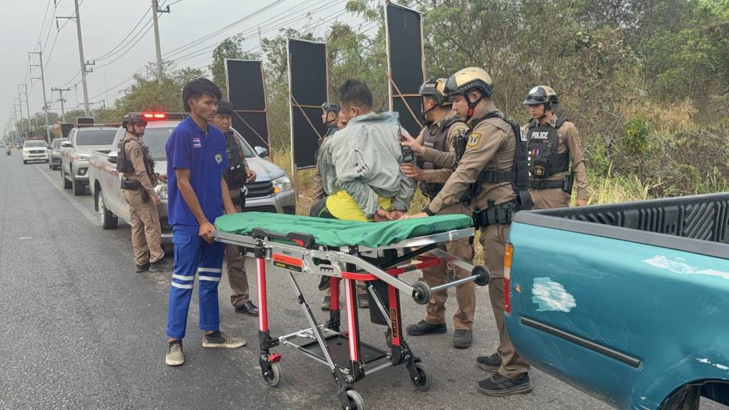 มุกดาหาร -ระห่ำ! ลูกทรพีคลั่งยาทำร้ายพ่อแม่แล้วซิ่งหนีชนรถตำรวจ ก่อนโดนยิงเจาะแขนจนมุมหน้า รร.บ้านนานาถ่อน