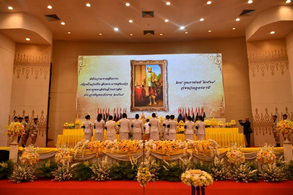 วันที่ 24 ก.พ.2569 เวลา 07.00 น.เป็นต้นไป นายศราวุธ เพชรพนมพร นายก อบจ.อุดรธานี มอบหมายให้ จ.ส.อ.สามิตร ศรีสองเมือง หัวหน้าสำนักปลัด อบจ.อุดรธานี นำข้าราชการในสังกัด เข้าร่วมพิธีวางพานพุ่มดอกไม้สดเนื่องในวันที่ระลึก พระบาทสมเด็จพระพุทธเลิศหล้านภาลัย ประจำปี พ.ศ. 2569 เพื่อเป็นการแสดงออกถึงความกตัญญูกตเวที และน้อมรำลึกถึงพระมหากรุณาธิคุณอันหาที่สุดมิได้ของพระบาทสมเด็จพระพุทธเลิศหล้านภาลัย(รัชกาลที่ 2) ผู้ทรงเป็นพระปฐมบรมศิลปินแห่งกรุงรัตนโกสินทร์ ด้วยทรงพระปรีชาสามารถในศิลปกรรมหลายสาขา จึงถือเอาวันที่ 24 ก.พ. ของทุกปี ซึ่งเป็นวันคล้ายวันพระบรมราชสมภพของพระองค์เป็น “วันศิลปินแห่งชาติ”ที่ทรงประกอบพระราชกรณียกิจนานัปการ อันเป็นคุณูปการต่อประเทศชาติและประชาชนสืบมาจนถึงปัจจุบัน ณ หอประชุมทองใหญ่ ศาลากลาง จ.อุดรธานี อ.เมืองอุดรธานี จ.อุดรธานี โดยมี นายณัฐพงศ์ คำวงศ์ปิน รอง ผวจ.อุดรธานี นางนิตยา คำวงศ์ปิน นางเรวดี วิถี รองนายกเหล่ากาชาดจังหวัดอุดรธานี พร้อมด้วย คณะกรรมการเหล่ากาชาด จ.อุดรธานี หัวหน้าส่วนราชการ ศาล ทหาร ตำรวจ ข้าราชการ และพสกนิกรชาว จ.อุดรธานี เข้าร่วมพิธีฯ