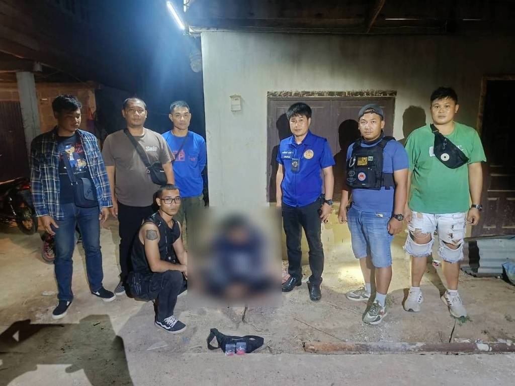 มุกดาหาร -ปฏิบัติการฟ้าผ่ากลางชุมชน! “สิงห์เมืองมุก” บุกบ้านเป่งเป้า รวบ 2 ผู้ต้องหา ยึดยาบ้า–ปืนเถื่อน พร้อมเงินล่อซื้อ
