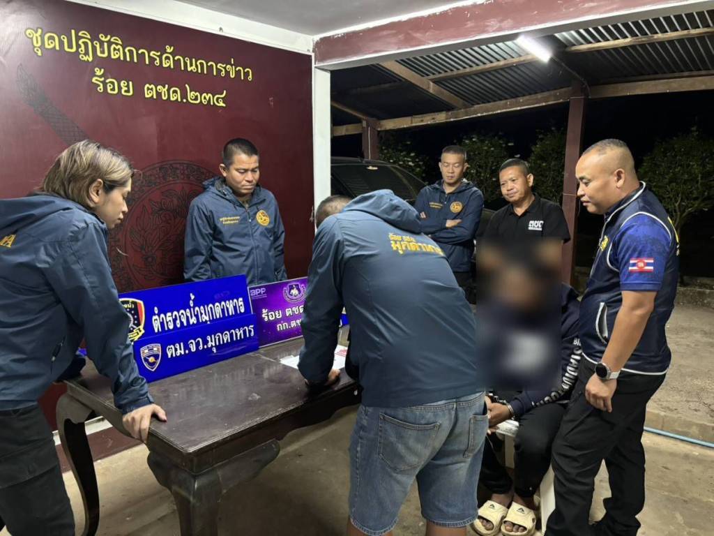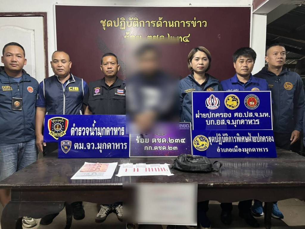 วันที่ 4 มีนาคม 2569 ภายใต้การอำนวยการของ นายนที พรมภักดี นายอำเภอเมืองมุกดาหาร และการสั่งการของนายหมวดเอกดนุภพ รองไชย ปลัดอำเภอ (หัวหน้ากลุ่มงานความมั่นคง) ได้ระดมกำลังชุดปฏิบัติการพิเศษฝ่ายปกครอง “สิงห์เมืองมุก” นำโดย มว.ท.ธัญญารัตน์ เหล่าบุตรศรี ปลัดอำเภอกลุ่มงานความมั่นคง พร้อมสมาชิก อส.ร้อย อส.อ.เมืองมุกดาหาร 2 บูรณาการร่วมกับ ร้อย ตชด.234, ฝ่ายปกครองจังหวัดมุกดาหาร, ตม.จว.มุกดาหาร และตำรวจน้ำมุกดาหาร ลงพื้นที่บ้านป่งเป้า หมู่ 2 ต.โพนทราย อ.เมืองมุกดาหาร หลังได้รับร้องเรียนว่ามีการมั่วสุมและเกี่ยวข้องกับยาเสพติดในพื้นที่ ผลการปฏิบัติสามารถจับกุมผู้ต้องหาได้ 2 ราย ได้แก่ นายอนุชาฯ หรือ “ฮอต” พร้อมของกลางยาบ้า 100 เม็ด และเงินสดล่อซื้อ 400 บาท และนายวีระชาติฯ พร้อมอาวุธปืนไว้ในครอบครองโดยไม่ได้รับอนุญาต