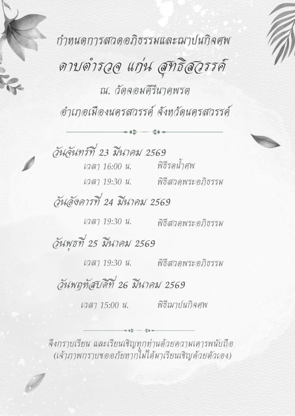 ขอเรียนเชิญท่านที่เคารพ ญาติสนิท มิตรสหาย ร่วมงาน ขออภัยหากมิได้ไปเรียนเชิญ