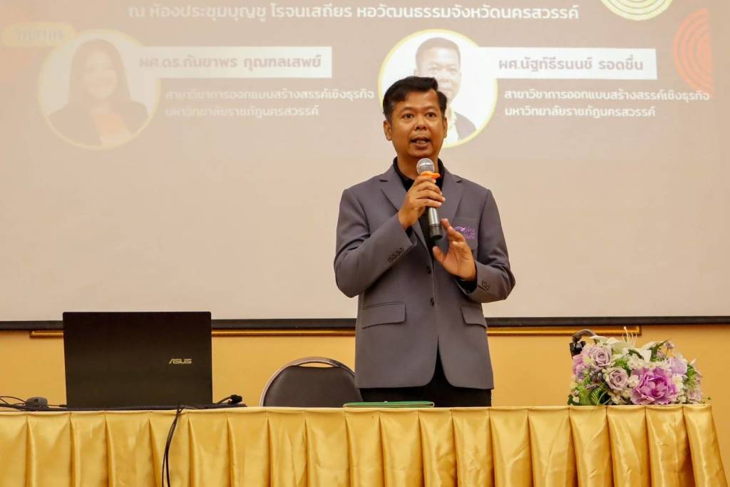 วันที่ 23 มีนาคม พ.ศ. 2569 ผู้ช่วยศาสตราจารย์ ดร.มงคล ศัยยกุล ผู้อำนวยการสำนักศิลปะและวัฒนธรรม มอบหมายดร.พิมรา ทองแสง รองผู้อำนวยการสำนักศิลปะและวัฒนธรรม ฝ่ายกิจกรรมและส่งเสริมทำนุบำรุงศิลปะและวัฒนธรรม เป็นประธานในพิธีเปิดโครงการขับเคลื่อน Soft Power เชิงสร้างสรรค์บนฐานอัตลักษณ์ศิลปวัฒนธรรมของท้องถิ่นอย่างยั่งยืน การอบรมเชิงปฏิบัติการ เรื่อง “การออกแบบเครื่องแต่งกายและของที่ระลึกไทดำ” ซึ่งจัดขึ้นระหว่างวันที่ 23-24 มีนาคม พ.ศ. 2569 โดยมีผู้ช่วยศาสตราจารย์นัฐท์ธีรนนช์ รอดชื่น รองผู้อำนวยการสำนักศิลปะและวัฒนธรรม ฝ่ายบริหารและยุทธศาสตร์การพัฒนาศิลปะและวัฒนธรรม กล่าวรายงานวัตถุประสงค์ของการจัดกิจกรรม ณ ห้องประชุมบุญชู โรจนเสถียร หอวัฒนธรรมจังหวัดนครสวรรค์ มหาวิทยาลัยราชภัฏนครสวรรค์