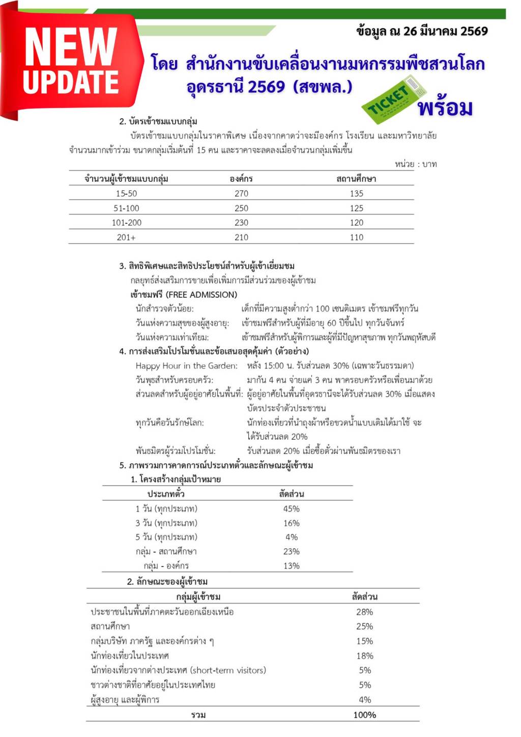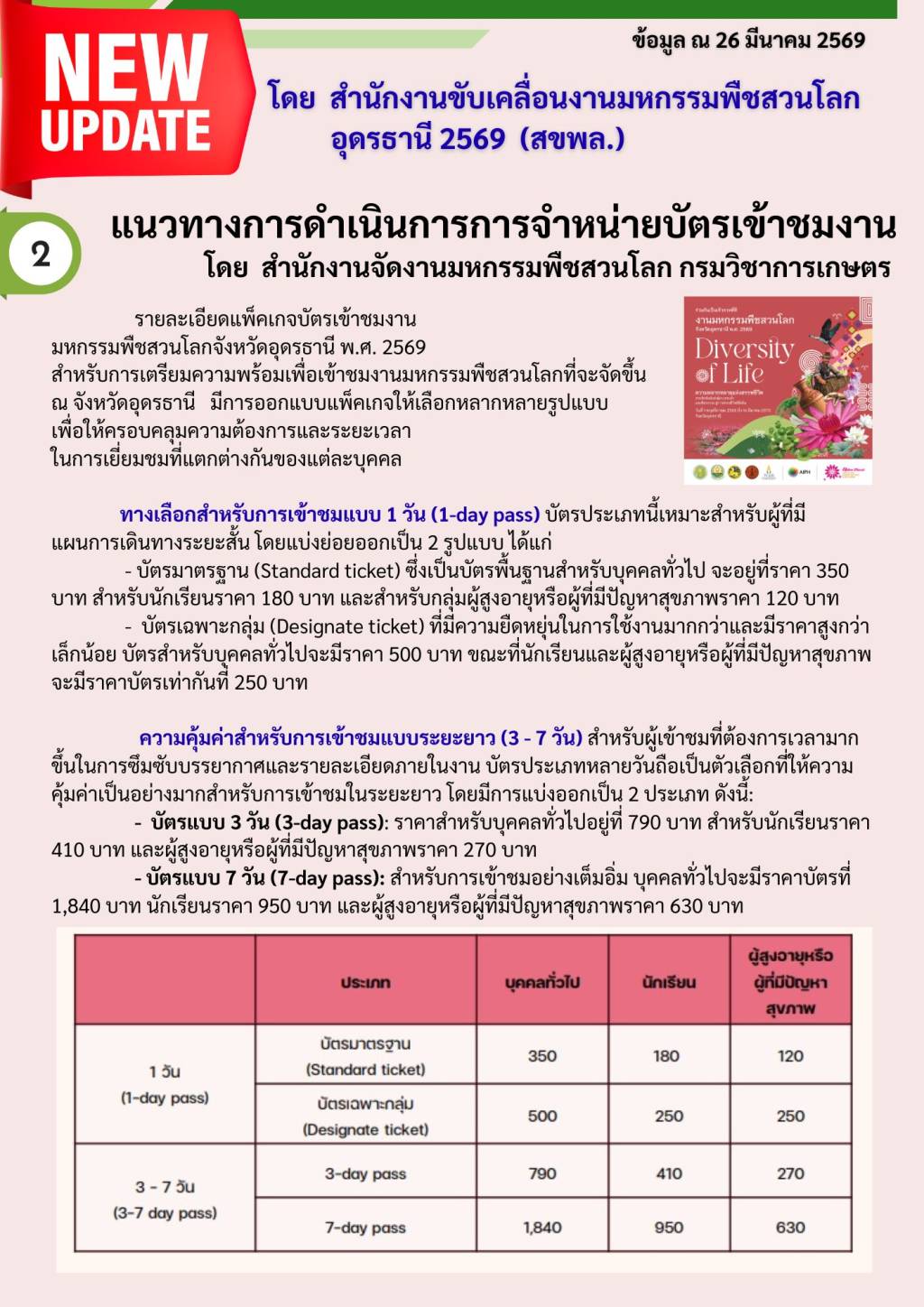 ราคาบัตรเข้าชม “พืชสวนโลกอุดรธานี 2569”
