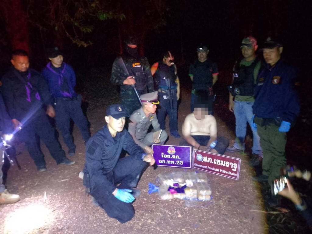 จากนั้น หน่วยได้ประสาน นรข.เขตอุบลราชธานี สภ.เขมราฐ ผู้นำหมู่บ้าน ร่วมบูรณาการไล่ติดตาม และสามารถควบคุมตัวได้ จำนวน 1 คน (นายภราดร พลานนท์ คนขับรถยนต์) บริเวณริมแม่น้ำโขง สามารถจับกุมผู้ต้องหาได้ 1 ราย พร้อมของกลาง เป็นยาบ้า จำนวน 86,000 เม็ด พร้อมรถเก๋งไม่ติดแผ่นป้ายทะเบียน หลังจากนั้นได้ทำการสอบสวนผู้ต้องหา และเข้าตรวจสอบพื้นที่ เพิ่มเติมต่อเนื่องจากเมื่อคืน โดยสามารถตรวจยึดยาบ้า จำนวน 108,000 เม็ด ห่างจากจุดแรก ประมาณ 500 ม. บริเวณริมถนนหมายเลข 2112 บ.โบกม่วง - บ.นาแวง ต.นาแวง อ.เขมราฐ จ.อุบลราชธานี รวมยาบ้าที่ตรวจยึดได้ 194,000 เม็ด นำส่ง สภ.เขมราฐ เพื่อดำเนินคดีตามกฎหมายต่อไป