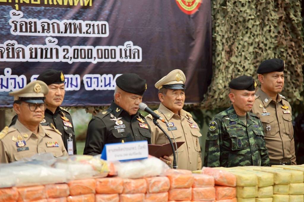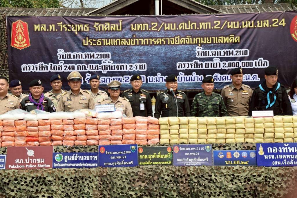 มทภ.2/ผบ.ศปก.ทภ.2/ผบ.นบ.ยส.24 แถลงข่าวตรวจยึดจับกุมยาบ้า 2,000,000 เม็ด และ ไอซ์ นำหนัก 249 กิโลกรัม ในพื้นที่ อ.สังคม จ.หนองคาย