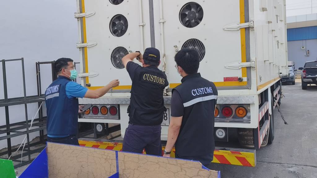 วันที่ 3 เมษายน 2569 ภายใต้การอำนวยการของนายพันธ์ทอง ลอยกุลนันท์ อธิบดีกรมศุลกากร พร้อมด้วยนางสาวสุนทรียา ทวิชาประสิทธิ์ รองอธิบดีกรมศุลกากร นางสาวลลิตา อรรถพิมล ผู้อำนวยการสำนักงานศุลกากรภาคที่ 2 และนางกนกวรรณ สุขศิริ นายด่านศุลกากรมุกดาหาร เจ้าหน้าที่ด่านศุลกากรมุกดาหาร สนธิกำลังร่วมกับฝ่ายสืบสวนและปราบปราม ส่วนควบคุมทางศุลกากร สำนักงานศุลกากรภาคที่ 2, ฝ่ายสืบสวนและปราบปราม 2 ส่วนสืบสวนและปราบปราม 1 กองสืบสวนและปราบปราม กรมศุลกากร ด่านกักกันสัตว์มุกดาหาร และหน่วยงานความมั่นคงในพื้นที่ เข้าตรวจสอบรถบรรทุกสินค้าหมายเลขทะเบียน 90-9108 นครราชสีมา บริเวณตำบลนาอุดม อำเภอนิคมคำสร้อย จังหวัดมุกดาหาร หลังได้รับข้อมูลน่าสงสัยว่าอาจมีการลักลอบขนส่งสินค้าที่ไม่ผ่านพิธีการศุลกากร