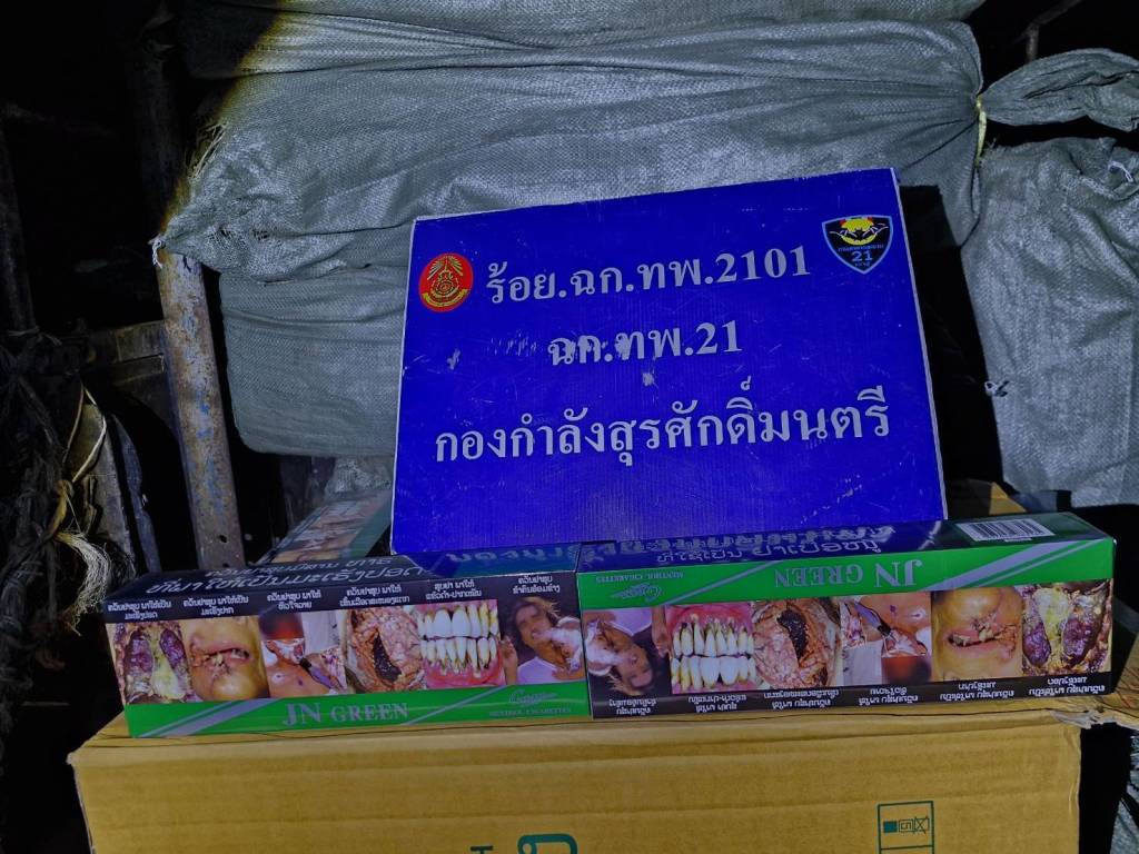 วันที่ 5 เมษายน 2569 เวลา 18.00 น. กองทัพบก โดย พลโทวีระยุทธ รักศิลป์ มทภ.2/ผบ.นบ.ยส.24 อำนวยการให้ กกล.สุรศักดิ์มนตรี/สกัดกั้น ฯ ตอนบน/ บก.ควบคุมที่ 1 (ร.3) โดย พ.อ.ศรณณัฐ นวลมณี ผบ.กรม ทพ.21/ผบ.ฉก.ทพ.21 สั่งการ ร.ท.วันชาติ เหมือนปืน ผบ.ร้อย.ฉก.ทพ.2101 ฉก.ทพ.21 จัดกำลังชุดปฏิบัติการเคลื่อนที่เร็วทำการซุ่มเฝ้าตรวจ ด้วยการใช้เครื่องพิเศษ กล้องตราวจการณ์เลากลางคืน บริเวณ พื้นที่ บ.โพธิ์ไทร ม.2 ต.ไผ่ล้อม อ.บ้านแพง จ.นครพนม ครั้นเมื่อเวลา 1910 ขณะที่ กำลังพลของหน่วย ซุ่มเฝ้าตรวจ ได้ตรวจพบ รถยนต์กระบะต้องสงสัย (ไม่ทราบยี่ห้อ และไม่มีป้ายทะเบียน) มาจอดอยู่ริมแม่น้ำโขง และได้เห็นกลุ่มบุคคลกำลังแบกสิ่งของมาจากริมฝั่งแม่น้ำโขงขึ้นมายังรถดังกล่าว จึงได้แสดงตัวขอเข้าตรวจสอบ จากนั้นกลุ่มบุคคลดังกล่าวเห็นว่าเป็นเจ้าหน้าที่ จึงได้วิ่งหลบหนีไปโดยอาศัยความมืดและความชำนาญในพื้นที่ จากการตรวจสอบ พบเป็น บุหรี่ที่ไม่ผ่านพิธีการทางศุลกากรอยู่ท้ายรถยนต์คันดังกล่าว จำนวน 18 กระสอบ, กระสอบละ 2 ลัง, ลังละ 50 คอตตอน, รวม 1,800 คอตตอน และคิดเป็นซองได้ จำนวน 18,000 ซอง มูลค่าความเสียหาย 1,080,000 บาท หน่วยฯ จึงได้ดำเนินการขนย้ายมายัง บก.ร้อย.ฉก.ทพ.2101 เพื่อทำการตรวจสอบ และตรวจนับอย่างละเอียดอีกครั้ง พร้อมตรวจยึดรถยนต์ของกลางที่ใช้ในการกระทำความผิด จำนวน 1 คัน พร้อมจะประสานหน่วยงานความมั่นคงในพื้นที่ร่วมบูรณาการตรวจยึดบันทึกภาพ และนำของกลางดำเนินการส่ง พงส.สอบสวน สภ.บ้านแพงฯ เพื่อนำเนินคดีตามกฎหมายต่อไป