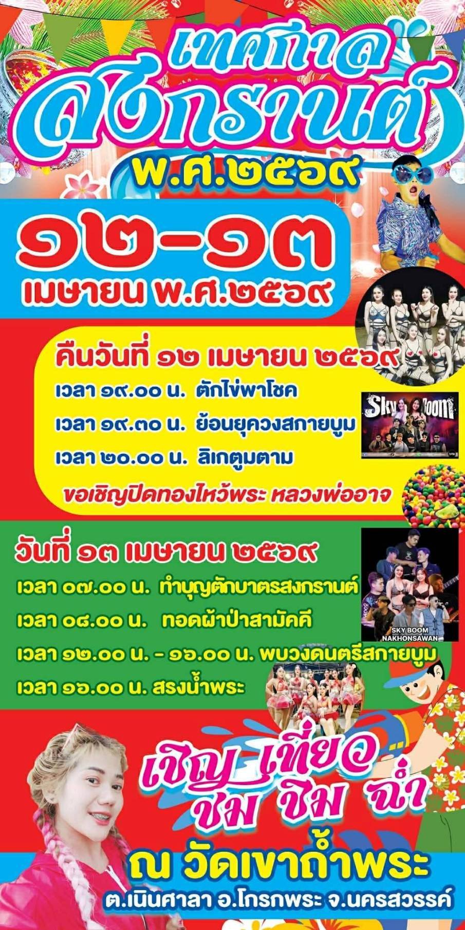ขอเชิญพุทธศาสนิกชนทุกท่าน ร่วมงานบุญประเพณีอันดีงาม เพื่อความเป็นสิริมงคลรับปีใหม่ไทย ณ วัดเขาถ้ำพระ ตำบลเนินศาลา อำเภอโกรกพระ จังหวัดนครสวรรค์