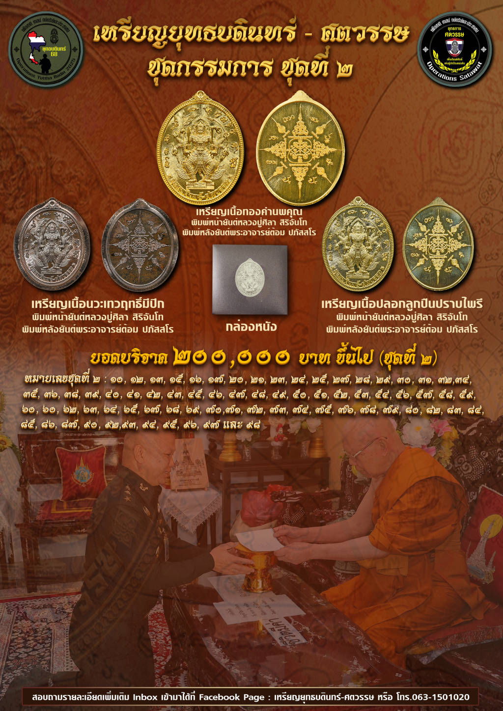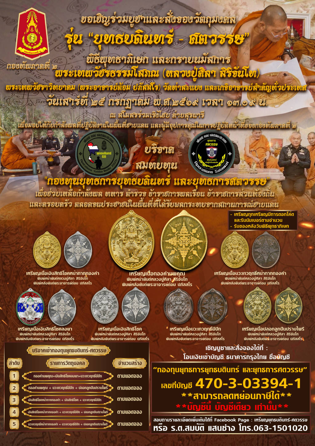 เปิดให้จอง เหรียญยุทธบดินทร์-ศตวรรษ แบ่งเป็น 2 กลุ่ม ดังนี้. *กลุ่มที่1 เป็นชุด 5เหรียญพิเศษ เพื่อเป็นที่ระลึก สำหรับ ผู้บริจาดเข้ากองทุนยุทธบดินทร์-ศตวรรษ