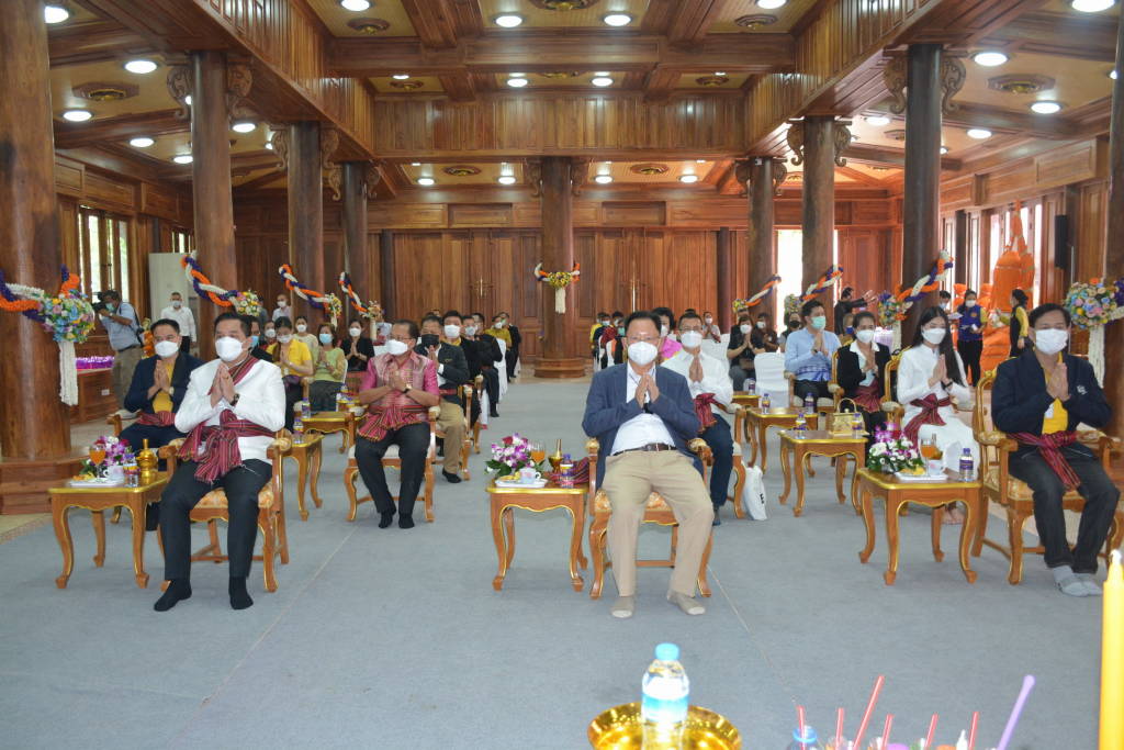 จากนั้น พระครูโกศลสิกขกิจ ได้นำคณะเดินทางเข้าไปที่ศาลาทม เพื่อประกอบพิธีทางศาสนา โดยพระสงฆ์เจริญพระพุทธมนต์ฉลองสมโภชเสริมบารมีให้แด่สมเด็จอัครมหาเสนาบดีเดโช ฮุน เซน นายกรัฐมนตรี พร้อมทั้งประกอบพิธีแซนโฎนตา ทอดผ้าบังสุกุล เพื่ออุทิศส่วนกุศลให้บรรพบุรุษ ในนามผู้แทนสมเด็จอัครมหาเสนาบดีเดโช ฮุน เซน นายกรัฐมนตรี โดยพระครูโกศลสิกขกิจ ได้มอบวัตถุมงคลหลวงปู่สรวง เทวดาเล่นดิน และผ้ายันต์หลวงปู่สรวง ให้แก่ รมช.ท่องเที่ยวและกีฬา กัมพูชา และคณะกรรมาธิการฯ ทุกคน พร้อมทั้งได้นำเอาด้ายมงคลผูกข้อมือ รมช.ท่องเที่ยวและกีฬา กัมพูชา และคณะประธานกรรมาธิการฯ เพื่อความเป็นสิริมงคลอีกด้วย