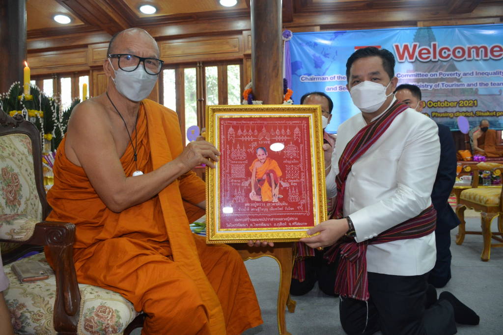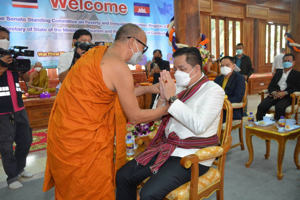 ศรีสะเกษ รมช.ท่องเที่ยวกัมพูชากราบไหว้หลวงปู่สรวงวัดไพรพัฒนาทำบุญเสริมบารมีให้สมเด็จฮุนเซน พร้อมสำรวจเส้นทางการท่องเที่ยวของ จ.ศรีสะเกษ เพื่อทำโครงการ 1 วีซ่า เที่ยว 2 ประเทศ