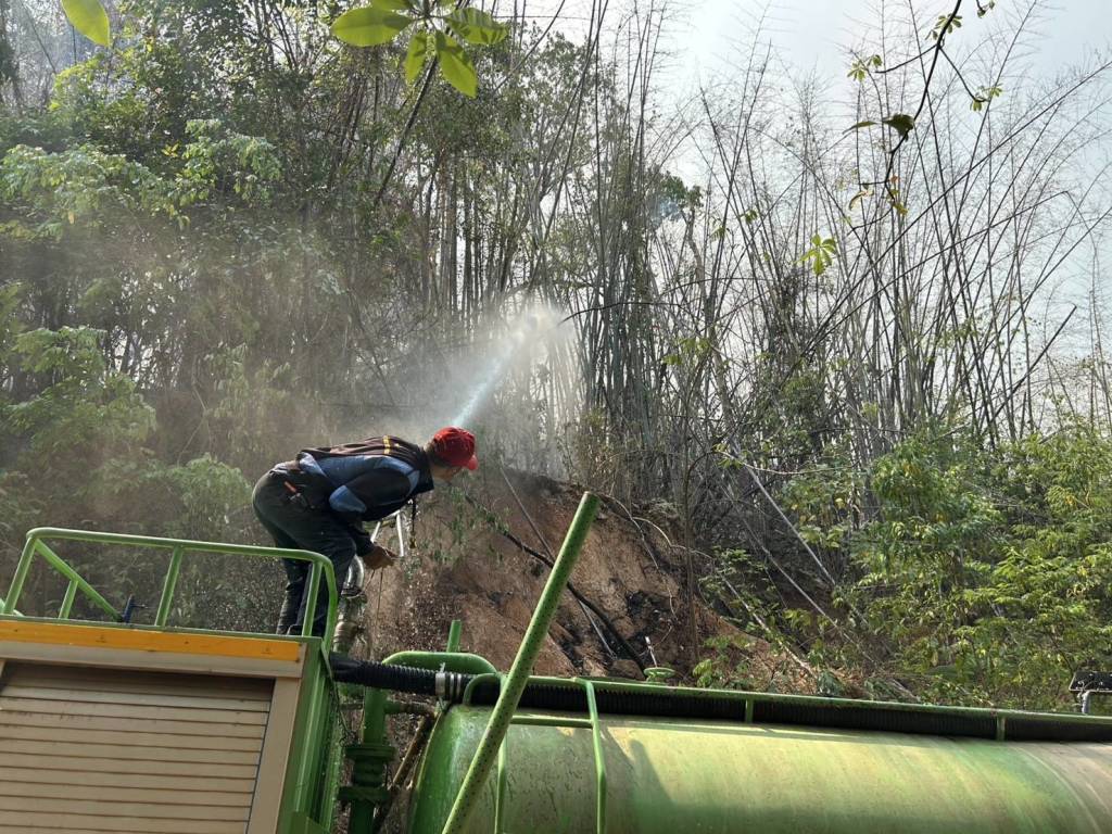 วันที่ 13 เม.ย.69 เวลา 15.00 น. นายราชันย์ ซุ้นฮั้ว ผู้ว่าราชการจังหวัดอุดรธานี นายชัยพิชิต สอนสมนึก ผอ.ทสจ อุดรธานี นายภาวิช บุญภัทดอนซุยแป นายอำเภอนายูง นายมานพ เพ็งพูน ผอ.ส่วนปฏิบัติการและควบคุมไฟป่า นายไพรินทร์ วงศ์วันดี ผอ. ส่วนอุทยานแห่งชาติ สบอ.10 ติดตามสถานการณ์ไฟป่า บริเวณวัดป่าภูก้อน อ นายูง จังหวัดอุดรธานี ซึ่งลุกลามตั้งแต่วันที่ 11 ต่อเนื่องมา ไฟไหม้ลุกลามเข้ารอบพื้นที่วิหารวิหาร ในพื้นที่ส่วนนี้ควบคุมสถานการฟณ์ไฟได้ สภาพพื้นที่สูงชันเป็นหน้าผาลึกยากต่อการเข้าไปดับในพื้นที่ แต่ต้องเฝ้าระวังต่อเนื่องเพื่อควบคุมการประทุไฟขึ้นอีกครั้ง