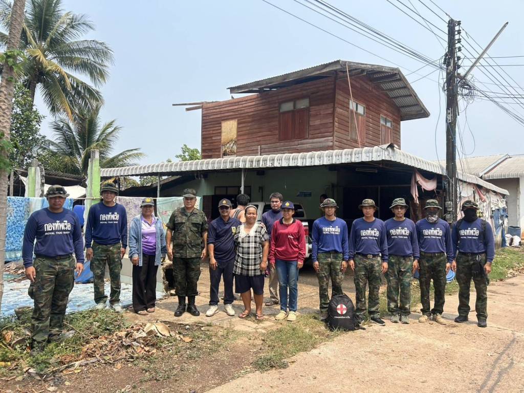 วันที่ 18 เมษายน 2569 สถานีเรือบ้านแพง หน่วยเรือรักษาความสงบเรียบร้อยตามลำน้ำโขง (นรข.) เขตนครพนม ภายใต้การนำของ ว่าที่ ร.อ.เพชรนคร ผิวขำ หัวหน้าสถานีเรือบ้านแพง ได้นำกำลังพลจำนวน 10 นาย พร้อมรถยนต์บรรทุกขนาดเล็ก 1 คัน ลงพื้นที่ร่วมกับเจ้าหน้าที่องค์การบริหารส่วนตำบลหนองเทา ออกสำรวจความเสียหายและให้ความช่วยเหลือประชาชนที่ได้รับผลกระทบจากพายุฤดูร้อน ซึ่งเกิดขึ้นเมื่อวันที่ 17 เมษายนที่ผ่านมา จากการตรวจสอบพบว่า ในพื้นที่ตำบลหนองเทา อำเภอท่าอุเทน จังหวัดนครพนม ได้รับความเสียหายรวม 4 หมู่บ้าน ได้แก่ หมู่ 1 บ้านหนองเทา หมู่ 2 บ้านแก้ง หมู่ 6 บ้านตาลท่า และหมู่ 7 บ้านหนองเทา มีบ้านเรือนได้รับความเสียหายรวมทั้งสิ้น 48 หลังคาเรือน โดยในจำนวนนี้เสียหายอย่างหนัก 6 หลัง เจ้าหน้าที่ได้จัดทีมพยาบาลลงพื้นที่แจกจ่ายยารักษาโรค พร้อมให้การช่วยเหลือเบื้องต้นแก่ประชาชนอย่างเร่งด่วน ขณะเดียวกันได้ประสานงานร่วมกับองค์การบริหารส่วนตำบลหนองเทา เพื่อวางแผนกำหนดวันและเวลาเข้าดำเนินการซ่อมแซมบ้านเรือนให้กับผู้ประสบภัยโดยเร็วที่สุด