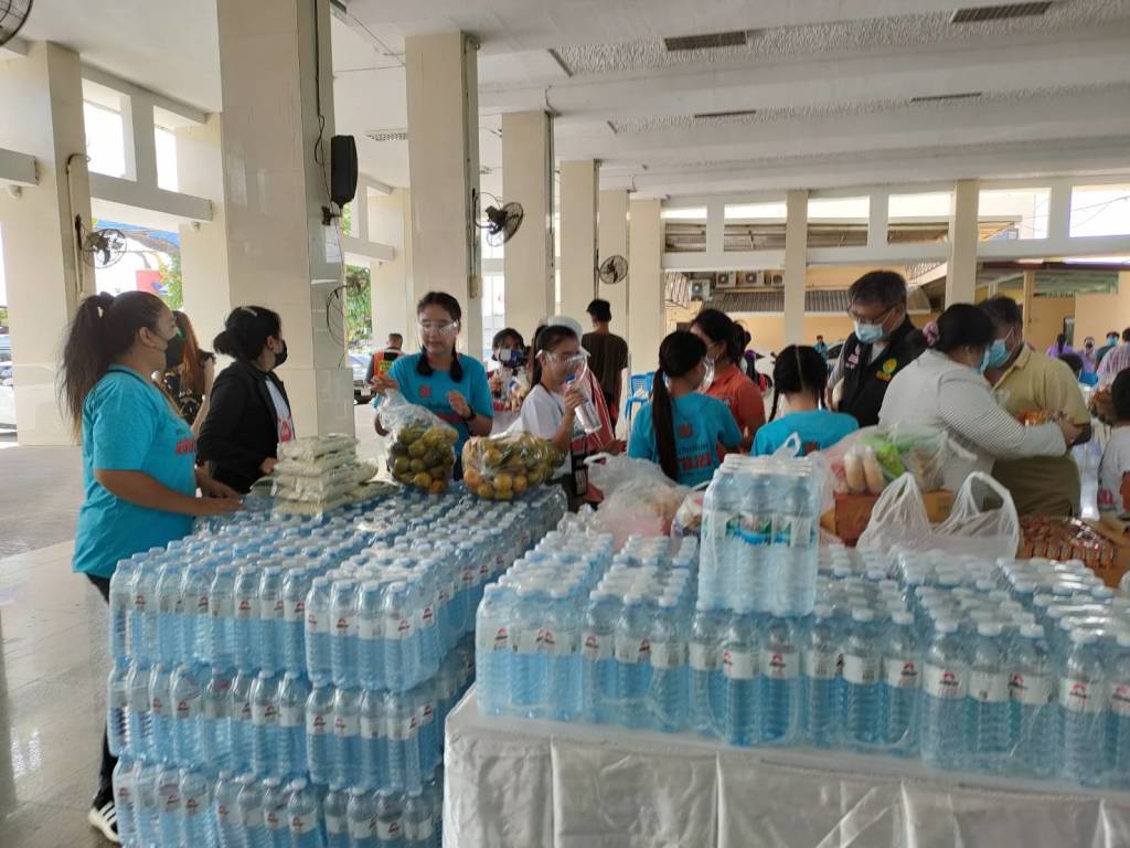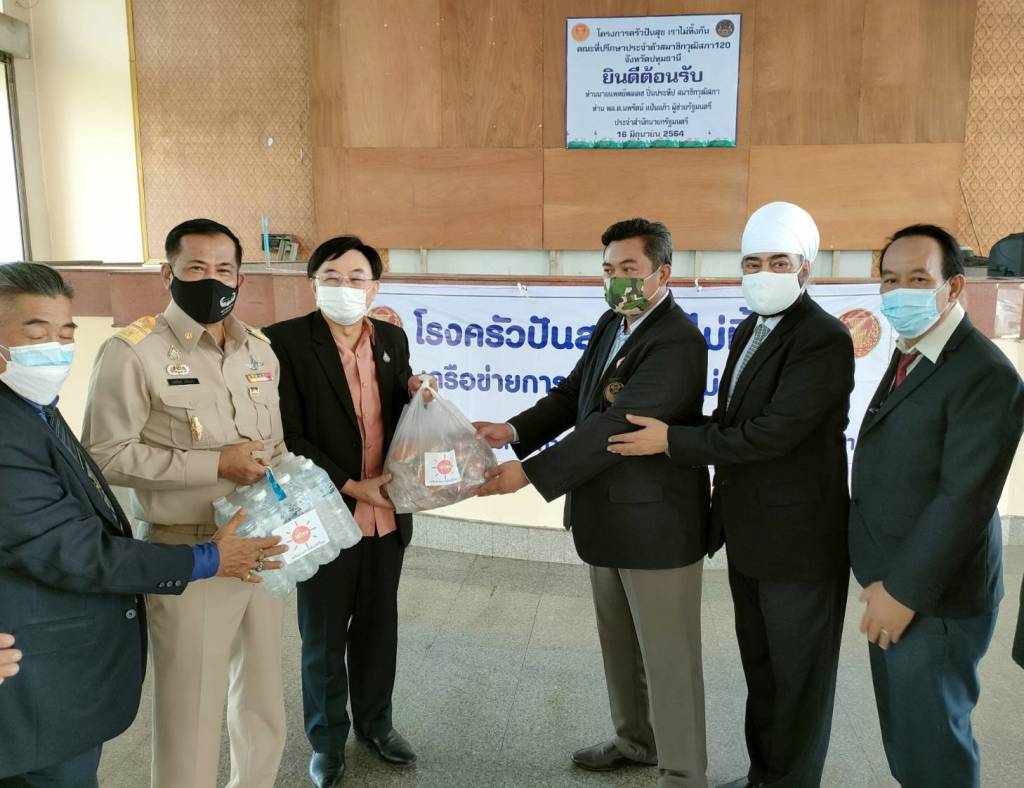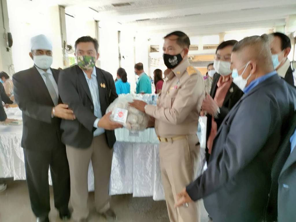 พล.ต.นพรัตน์ แป้นแก้ว เสธ.แป้น กรรมการผู้ช่วยรัฐมนตรีสำนักนายกรัฐมนตรี และบรรหาร บุญเขต ประคณะทำงานการมีส่วนร่วมการเมืองวิถีใหม่ วุฒิสภา มอบสิ่งของครัวปันสุข เราไม่ทิ้งกัน