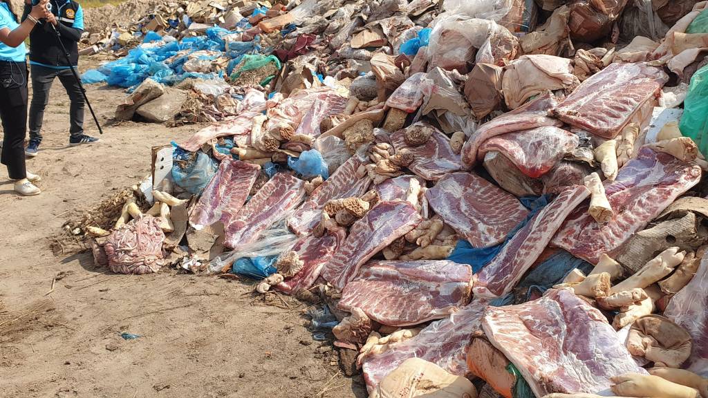 การฝังทำลายชิ้นส่วนเครื่องในและเนื้อสุกรของกลางในวันนี้ มีจำนวนมากถึง จำนวน 723,786 กิโลกรัม คิดเป็นมูลค่า 123 ล้านบาท ซึ่งจำเป็นต้องใช้รถบรรทุกสิบล้อพ่วง จำนวน 35 เที่ยว รถบรรทุกสิบล้อ จำนวน 3 เที่ยว รถบรรทุกตู้คอนเทนเนอร์ จำนวน 1 เที่ยว ถือเป็นจำนวนมากที่สุดในประวัติศาสตร์ที่เคยดำเนินการมา