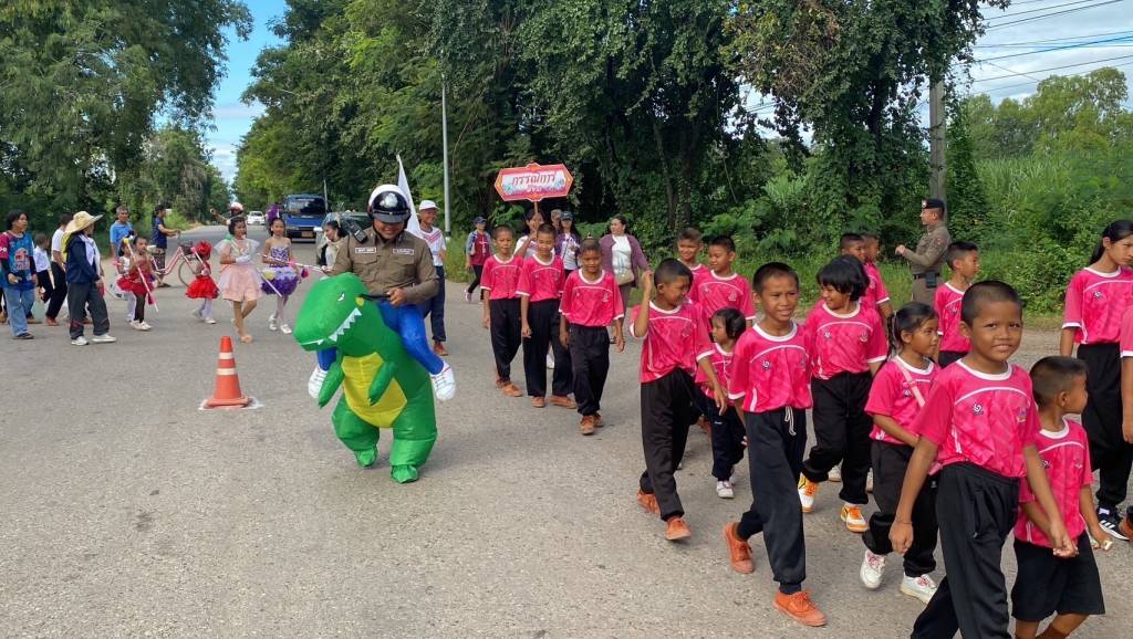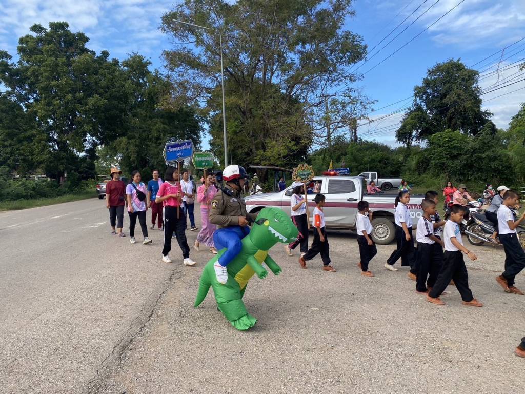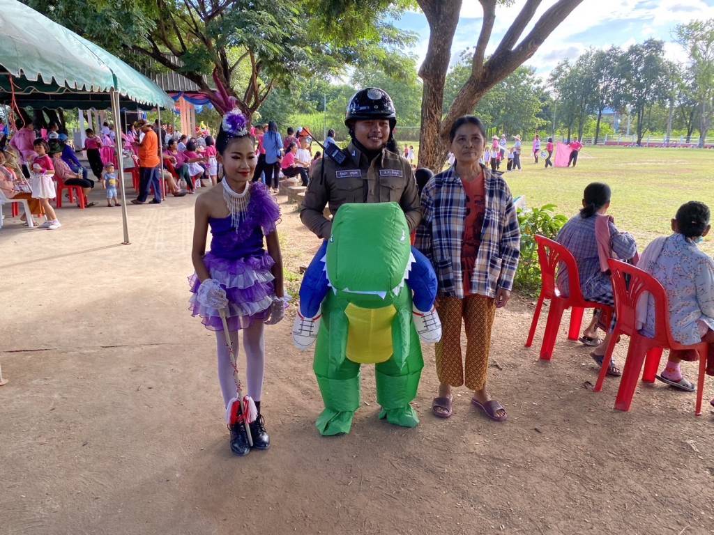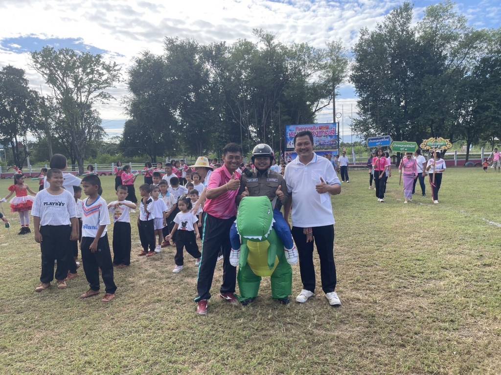 ชัยภูมิ.....สีสันเด็กนักเรียนประถมสนุกเล่นกับตำรวจแต่งไดโนเสาร์ร่วมแข่งขันกีฬาสี