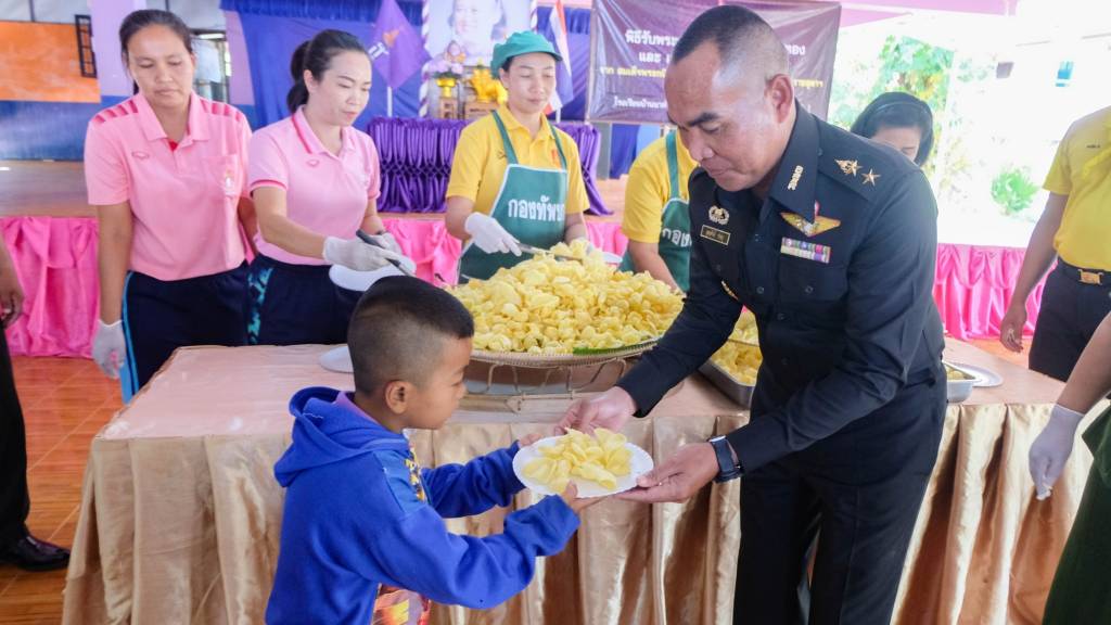 ร.13 พัน.3 มอบข้าวเกรียบฟักทองพระราชทาน ให้กับโรงเรียนตามโครงการทหารพันธุ์ดี”ชุมชนเบิกบาน อาหารปลอดภัย”