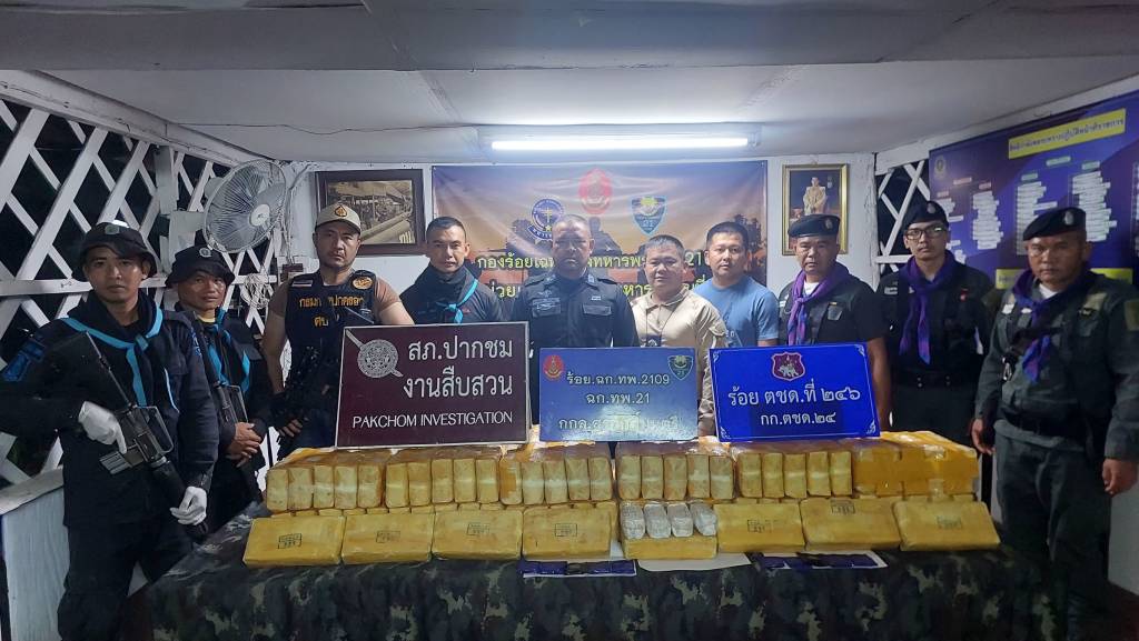 วันที่ 31 สิงหาคม 2567 เวลา 22.00น พันเอก อินทราวุธ ทองคำ ผู้บังคับการหน่วยเฉพาะกิจกรมทหารพรานที่ 21 ได้รับแจ้งจากสายลับ ว่าจะมีการลักลอบส่งยาเสพติด ไม่ทราบจำนวนเข้ามาในพื้นที่ บ.หาดคัมภีร์ ม.1 ต.หาดคัมภีร์ อ.ปากชม จ.เลย จึงได้สั่งการให้ ร้อยโท ทนงศึก สีทองสุด ผู้บังคับการกองทหารพรานที่ 2109 จัดกำลังพลชุดเคลื่อนที่เร็ว และชุดปฏิบัติการที่ 5 แก่งจันทร์ เฝ้าตรวจ พื้นที่ดังกล่าว เพื่อป้องกัน และสกัดกั้นการกระทำผิดตาม พ.ร.บ.ต่างๆ เมื่อเวลา 22.30น ตรวจพบรถยนต์ต้องสงสัย ขับมาจอดที่บริเวณป่ากล้วย ริมถนนหมายเลข 211 ( อ.ปากชม - อ.สังคม ) เจ้าหน้าที่ ที่ซุ่มอยู่ตามที่ได้รับแจ้ง เห็นจึงเข้าทำการตรวจสอบ แต่รถยนต์คันดังกล่าว เห็นเจ้าหน้าที่ จึงได้ขับออกไปอย่างรวดเร็ว มุ่งหน้าไปทาง อ.สังคม จ.หนองคาย เจ้าหน้าที่ไล่ติดตามไปแต่ไม่ทัน จึงได้เข้าตรวจสอบพื้นที่บริเวณที่เกิดเหตุ พบกระสอบสีดำ จำนวน 2 กระสอบ วางอยู่ริมถนน และอีก 1 กระสอบ วางอยู่ในป่ากล้วย จึงได้ประสาน จนท.สภ.ปากชม, ร้อย.ตชด.246 และ ฝ่ายปกครองอำเภอปากชม ร่วมกันเข้าตรวจสอบ กระสอบดังกล่าว เปิดออกดู พบเป็น หีบห่อบรรจุยาบ้า จึงทำการตรวจยึด ยาบ้าทั้งหมด นำมาไว้ที่ทำการร้อย.ฉก.ทพ.2109 ฯ เพื่อทำการตรวจนับอย่างละเอียด ยาบ้า จำนวน 3 กระสอบ ตรวจนับได้ 100 แพ็คๆละ 10,000 เม็ด ประมาณ 1,000,000 เม็ด ของกลาง อยู่ในระหว่างการนำส่ง พนง.สอบสวน สภ.ปากชม เพื่อดำเนินการตามกฏหมายต่อไป
