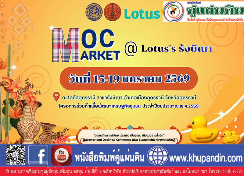 ห้ามพลาด! งานดีของคนอุดรกลับมาแล้ว “Moc Market @Lotus’s รังษิณา”