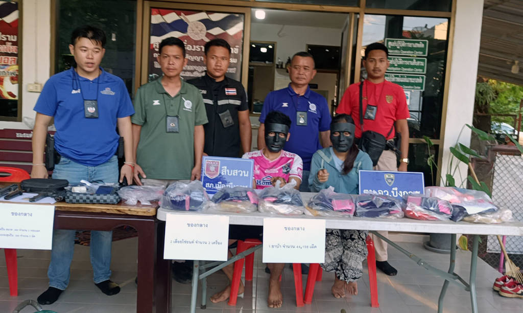 บึงกาฬ จับ 2 ผัวเมียค้ายาบ้า 44,158 เม็ดยึดปืนสั้น 2 กระบอกเลื่อยโซ่ยนต์ 2 เครื่อง