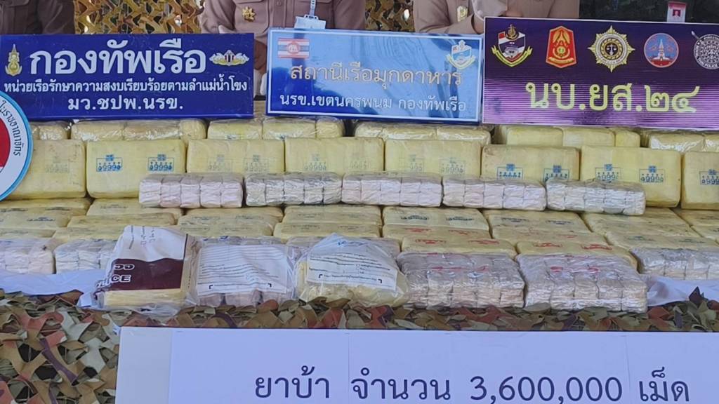 สืบเนื่องจากเมื่อวันที่ 24 ตุลาคม น.ท.เตชธร ฉิมพาลี หัวหน้าสถานีเรือมุกดาหาร ได้รับแจ้งจากสายลับว่าจะมีขบวนการค้ายาเสพติดข้ามชาติ ลักลอบลำเลียงยาเสพติดข้ามแม่น้ำโขงเข้ามาในพื้นที่ อ.เมือง จ.มุกดาหาร จึงได้สั่งการให้ชุดปฏิบัติการสถานีเรือมุกดาหาร พร้อมทั้งประสานหน่วยงานความมั่นคงในพื้นที่ เพื่อบูรณาการปฏิบัติร่วมกัน วางแผนในการสกัดกั้นและจับกุมโดยการเฝ้าสังเกตการณ์ และจัดวางกำลังตามเส้นทางคมนาคมที่คาดว่าผู้กระทำผิดจะใช้เป็นเส้นทางในการหลบหนี จนกระทั่งเวลาประมาณ 20.30 น. ชุดเฝ้าตรวจบริเวณริมฝั่งแม่น้ำโขงได้ยินเสียงเรือแล่นเข้ามาบริเวณฝั่งระยะห่างจากจุดซุ่ม ประมาณ 300 เมตร พร้อมกับได้ยินเสียงรถยนต์วิ่งมาบริเวณดังกล่าว ชุดซุ่มเฝ้าตรวจจึงได้นำกำลังเข้าไปบริเวณดังกล่าว และสังเกตเห็นว่ามีการลำเลียงกระสอบขึ้นรถยนต์ยี่ห้อ ISUZU รุ่น MU X สีขาวทะเบียน ขก 7917 อุดรธานี จากนั้นรถยนต์คันดังกล่าวได้เคลื่อนตัวออกไปอย่างรวดเร็ว ขณะที่เรือลำเลียงก็ได้วิ่งกลับฝั่ง สปป.ลาว จึงแจ้งให้เจ้าหน้าที่ไล่ติดตามรถยนต์เพื่อจะขอตรวจค้น แต่รถยนต์คันดังกล่าวเมื่อเห็นเจ้าหน้าที่ก็ได้เร่งเครื่องขับหลบหนี กระทั่งต่อมาได้ติดตามพบรถต้องสงสัยคันดังกล่าวจอดทิ้งไว้บริเวณริมถนนติดกับสวนยางพารา ริมทางสาธารณะบ้านหนองโจด ม.13 ต.บ้านโคก อ.เมืองมุกดาหาร จ.มุกดาหาร จึงได้เข้าเข้าตรวจค้นรถยนต์คันดังกล่าว พบกระสอบสีขาว จำนวน 9 กระสอบ อยู่ที่ด้านหลังตัวรถ เมื่อเปิดกระสอบบอกดูพบยาบ้าจำนวน 3,600,000 เม็ด จึงได้ตรวจยึดไว้เป็นของกลางและนำส่งพนักงานสอบสวน สภ.ผึ่งแดด เพื่อทำการสืบสวนสอบสวนเพื่อขยายผลและติดตามจับกุมผู้กระทำผิดมาดำเนินคดีตามกฎหมายต่อไป