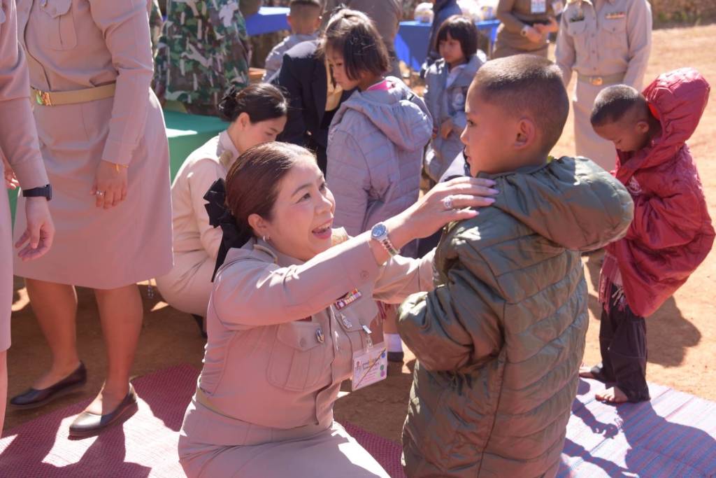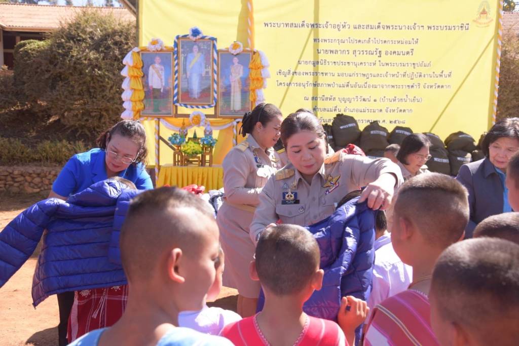 วันเสาร์ที่ 25 มกราคม 2568 เวลาประมาณ 11.00 น. นายพลากร สุวรรณรัฐ องคมนตรี ประธานอนุกรรมการติดตามและขับเคลื่อนโครงการอันเนื่องมาจากพระราชดำริในพื้นที่ภาคเหนือ พร้อมด้วย นางสุพร ตรีนรินทร์ เลขาธิการ กปร. เจ้าหน้าที่มูลนิธิราชประชานุเคราะห์ ในพระบรมราชูปถัมภ์ และคณะอนุกรรมการฯ เดินทางไปยังโรงเรียนบ้านน้ำหอม สาขาบ้านห้วยน้ำเย็น อำเภอแม่ระมาด จังหวัดตาก เพื่อเชิญสิ่งของพระราชทานจากพระบาทสมเด็จพระเจ้าอยู่หัว และสมเด็จพระนางเจ้า ฯ พระบรมราชินี ไปมอบแก่ราษฎรและผู้ปฏิบัติงานในพื้นที่โครงการอนุรักษ์สภาพป่าแม่ตื่นอันเนื่องมาจากพระราชดำริ สถานีสหัส บุญญาวิวัฒน์ 1 (บ้านห้วยน้ำเย็น) ประกอบด้วย เสื้อกันหนาวแก่เด็กในพื้นที่โครงการฯ จำนวน 97 ตัว สิ่งของพระราชทานแก่ราษฎรและผู้ปฏิบัติงานในพื้นที่โครงการฯ จำนวน 86 ถุง
