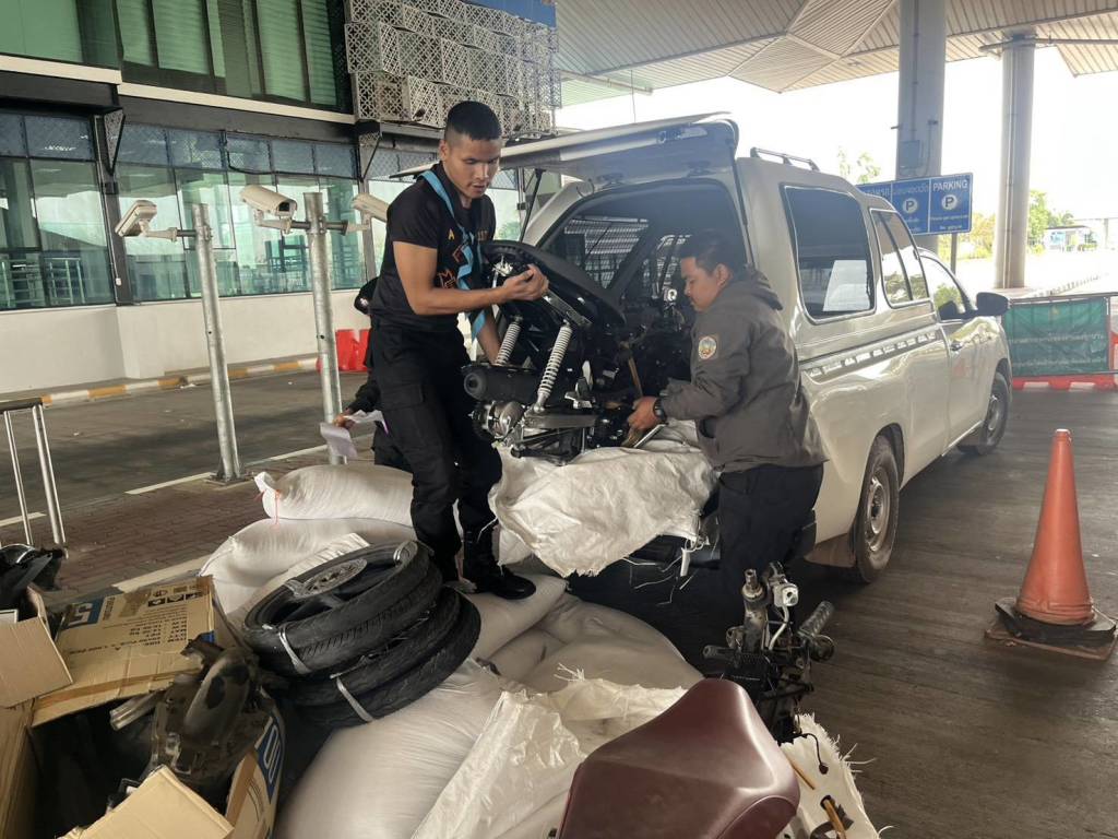วันที่ 8 มีนาคม 2568 พันตรี คำรณ คุ้มเขตผบ.ร้อย.ฉก.ทพ.2105 ได้รับแจ้งว่าในห้วงเวลาประมาณ 11.00 - 13.00 น. จะมีรถลักลอบขนสินค้าที่ไม่ผ่านพิธีการศุลกากรออกไปยัง สปป.ลาว โดยใช้ช่องทางด่านพรมแดนสะพานมิตรภาพไทย-ลาว แห่งที่ 2 (มุกดาหาร -สะหวันนะเขต) ครั้นเมื่อเวลาประมาณ 12.00 น. ชุดปฏิบัติงาน ร่วมซึ่งประกอบด้วยเจ้าหน้าที่กองร้อยทหารพรานที่ 2105 และเจ้าหน้าที่กองร้อย ตชด.ที่ 234 , ด่านตรวจสัตว์ป่ามุกดาหาร, ศุลกากรมุกดาหาร เจ้าหน้าที่ด่านอาหารและยามุกดาหาร ร่วมปฏิบัติงานบริเวณช่องทางขาออกด่านพรมแดนมุกดาหาร ได้ตรวจสอบรถยนต์ต้องสงสัยตามที่ได้รับแจ้งยี่ห้อ โตโยต้า ไฮลักซ์ รีโว่สีขาว ทะเบียน สะหวันนะเขต กม 1313 ติดตั้งโครงหลังคาตู้ทึบที่กระบะท้าย และที่บริเวณกระจกหน้ารถติดสติ๊กเกอร์ "วตป" ซึ่งเป็นตัวอักษรลาวย่อมาจาก "วิทยาการตำรวจประชาชน" วิ่งเข้ามาจอดช่องทางขาออก พบ ท้าว เพดสะหวัน บุดวิเสด อายุ 24 ปี ราษฎรบ้านหัวเมืองใต้ นครไกสอนพมสิหาน แขวงสะหวันนะเขต สปป.ลาว เปิดประตูรถแล้วลงจากรถเดินถือเอกสารไปยังตู้ตรวจของตรวจคนเข้าเมือง เสร็จแล้วเดินกลับมายังรถยนต์คันดังกล่าว เจ้าหน้าที่จึงแสดงตัวขอตรวจสอบสิ่งของที่บรรทุกมาในรถยนต์คันดังกล่าว โดยมีท้าวเพดสะหวัน เป็นผู้นำตรวจ เมื่อเปิดประตูท้ายพบเป็นกระสอบข้าวสารจำนวน 32 กระสอบ กระสอบละ 50 กิโลกรัม รวมน้ำหนัก 1,600 กิโลกรัม