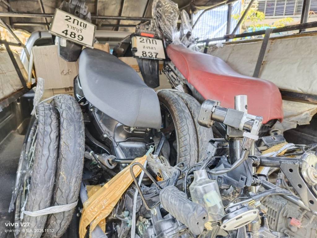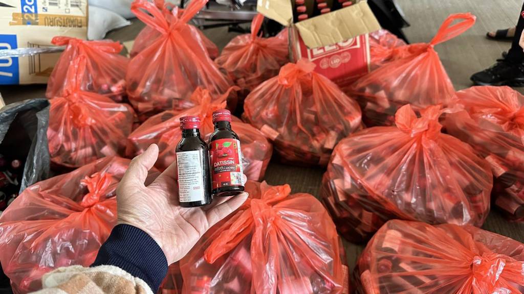 เมื่อนำกระสอบข้าวสารออกพบกระสอบสีเขียว จำนวน 2 กระสอบ ภายในมีถุงพลาสติกสีแดง บรรจุยาแก้ไอยี่ห้อ ดาทิสซิน ชนิดน้ำเชื่อมบรรจุขวด ขวดละ 60 มล. นับจำนวนได้ 800 ขวด เนื่องจากในขณะตรวจสอบรถยนต์ที่บรรทุกสินค้าจอดขวางช่องทางออก จึงได้ให้ท้าวเพ็ดสะหวัน เคลื่อนรถเข้าจอดริมฟุตบาท หลังจากนั้นได้ทำการตรวจสอบเพิ่มเติมโดยทำการขนกระสอบข้าวสารลงจากรถทั้งหมด ปรากฏว่าพบรถจักรยานยนต์ลักษณะถูกแยกชิ้นส่วน จำนวน 2 คันทะเบียน 5 กก สงขลา เลขที่ 837 และหมายเลขทะเบียน 2 กญ ราชบุรี 489 บรรจุในกล่องกระดาษ จำนวน 2 กล่อง ซุกซ่อนอยู่ด้านในรถ และเมื่อตรวจสอบภายในรถยนต์ด้านที่นั่งข้างคนขับพบกระสอบสีเขียวอีกจำนวน 2 กระสอบ ภายในมีถุงพลาสติกสีแดง บรรจุยาแก้ไอ ยี่ห้อ ดาทิสซิน ชนิดน้ำเชื่อมบรรจุขวด ขวดละ 60 มล. นับจำนวนได้ 700 ขวด รวมทั้งหมดเป็นจำนวน 1,500 ขวด จากการตรวจสอบในเบื้องต้นพบว่าเป็นยาปลอม