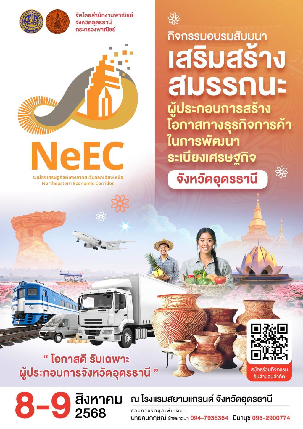สำนักงานพาณิชย์จังหวัดอุดรธานี จัดกิจกรรมอบรมสัมมนา “เสริมสร้างสมรรถนะผู้ประกอบการ สร้างโอกาสทางธุรกิจการค้า ในการพัฒนาระเบียงเศรษฐกิจ (NeEC)”