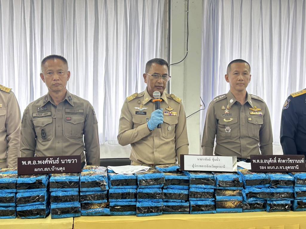 จังหวัดอุดรธานี แถลงข่าวการจับกุมผู้ต้องหาพร้อมของกลางยาไอซ์ จำนวน 448 กิโลกรัม